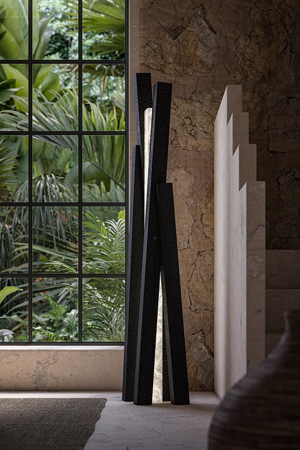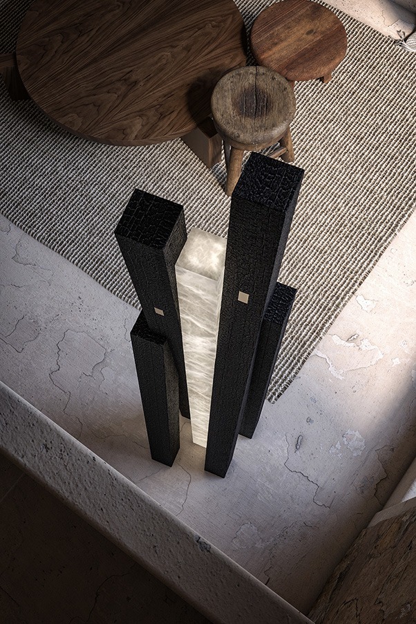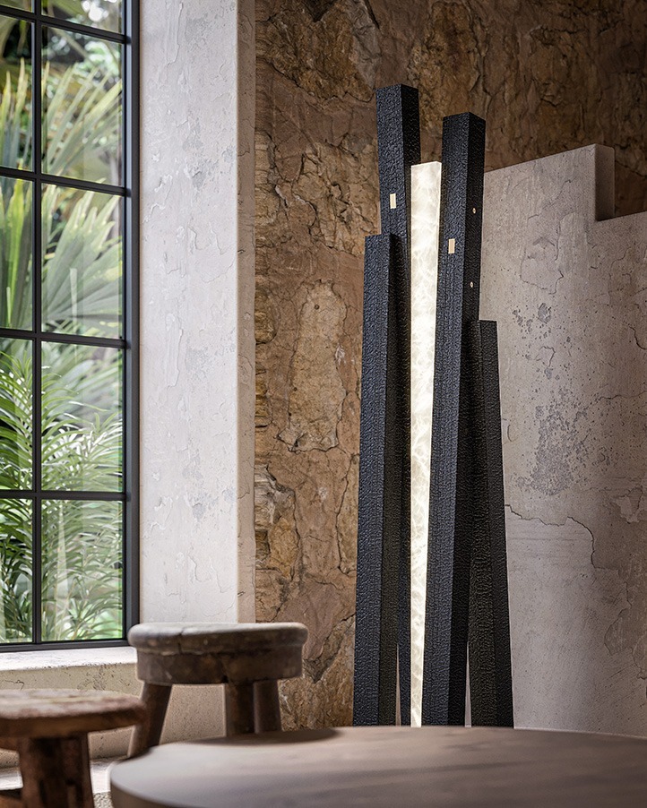 Торшер TERRA L выделяется своей изящной скульптурой из алебастра, элегантно обрамленной четырьмя деревянными балками. Этот тонкий союз между минеральным светом и прочностью дерева создает поразительный контраст, в котором сочетаются материал и блеск. Это выразительное изделие, в котором природа и дизайн сливаются в идеальной гармонии.