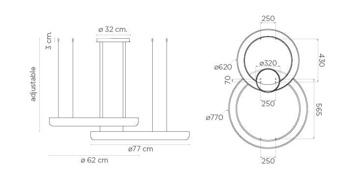 Светильник Halo с минималистичной структурой, полностью подсвеченный, что позволяет оценить все детали каждого уникального изделия. Подвесные тросы регулируются по высоте. Регулировка яркости. Благодаря соединению нескольких светильников достигается великолепный декоративный эффект при качественном освещении.