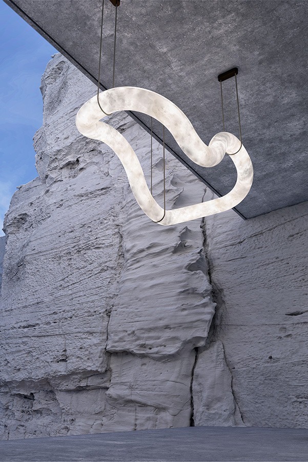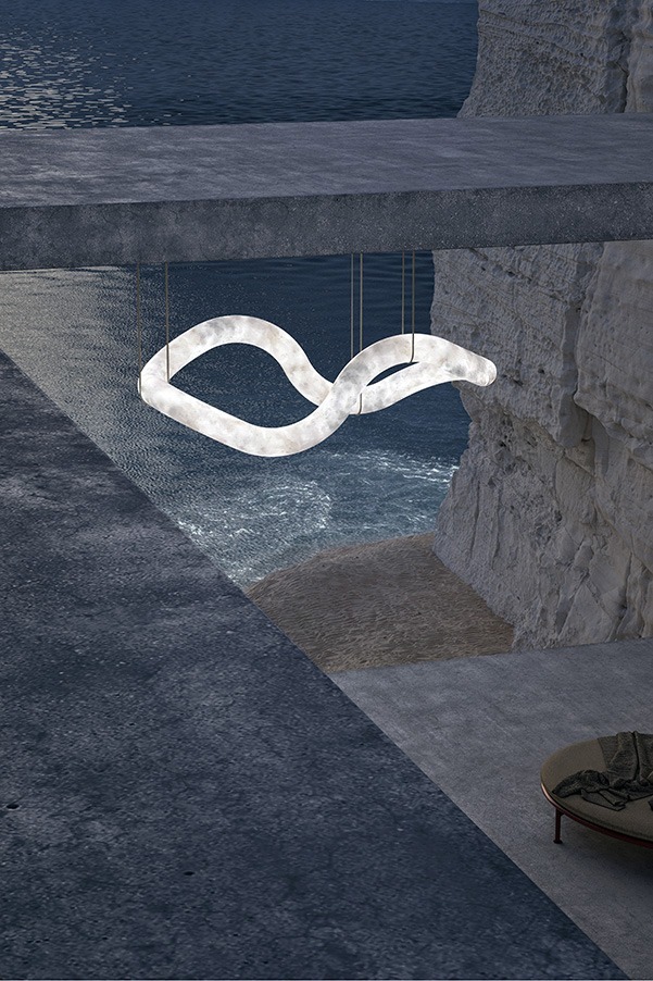 Великолепное продолжение престижной коллекции INFINITY, модель VAGUE создает плавные и изящные движения. Ее длина составляет 140 см, и она величественно растягивается, улавливая свет и тонкие вибрации алебастра. Она создает удлиненную и упорядоченную перспективу, одновременно создавая ощущение созерцательной связи с материалом.