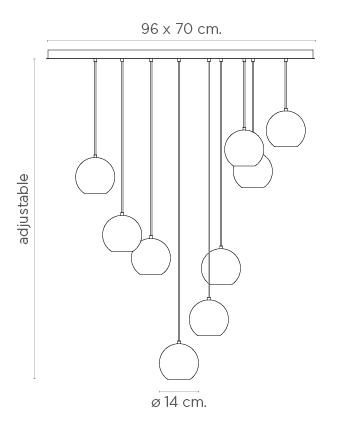 Поток светящихся шариков, рассеивающийся в пространстве. Подвесной светильник Rain Balls с 12 светильниками может освещать большой стол, гостиную или лестницу, в зависимости от распределения оттенков. Этот светильник, выполненный из алебастра, имеет деревянное основание, покрытое лаком, и различные варианты отделки конструкции и электрического кабеля. Коллекция Rain Balls может быть подвешена к потолку в виде комплектов из 9 или 12 светильников, что позволяет адаптировать освещение к потребностям каждого помещения.