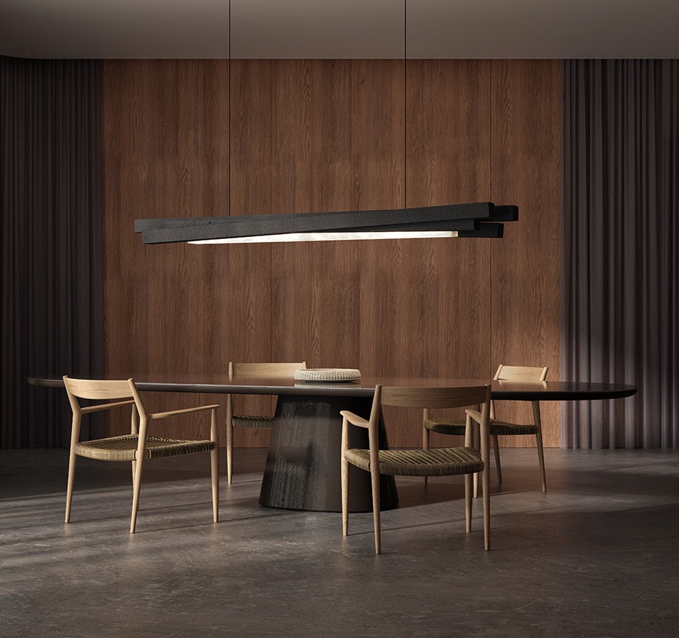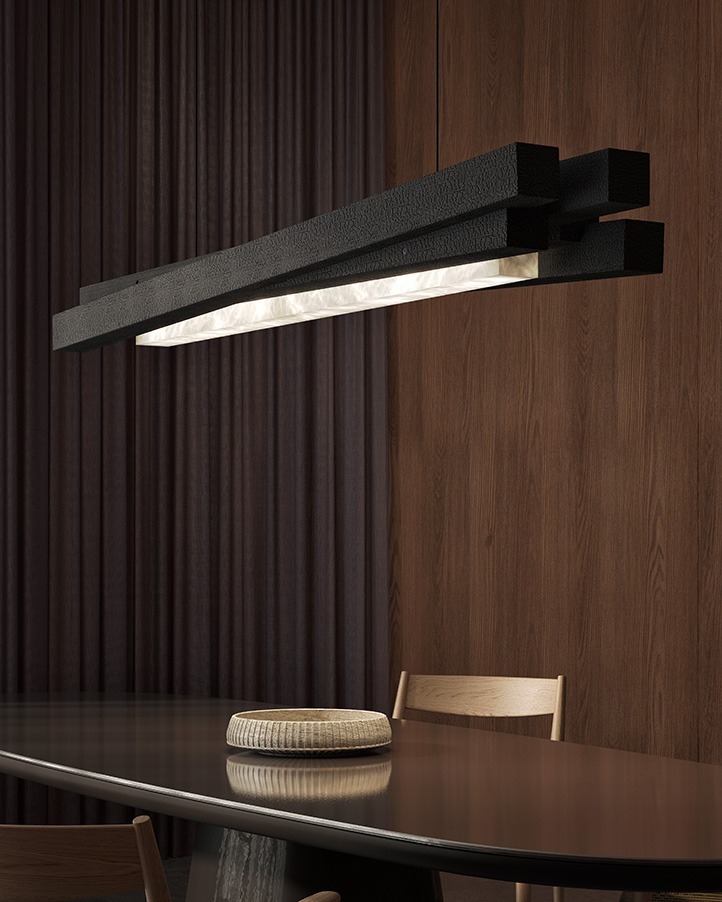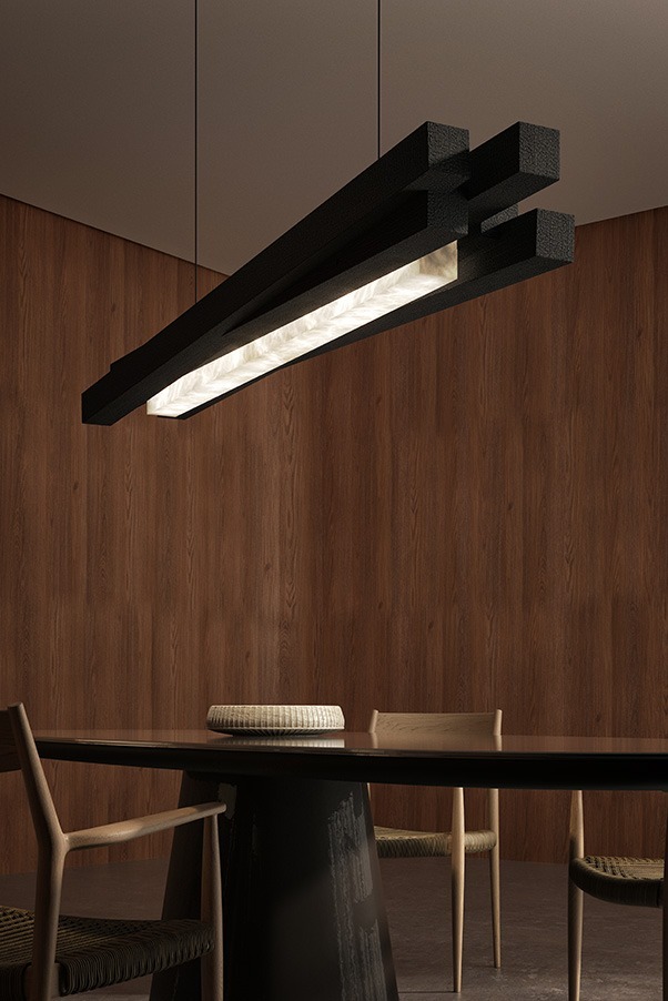 Величественная и инновационная подвеска TERRA воплощает в себе элегантность, неподвластную времени. Это настоящее произведение искусства, в котором алебастр сочетается с элементами из обожженного дерева, создавая иллюзию левитации.