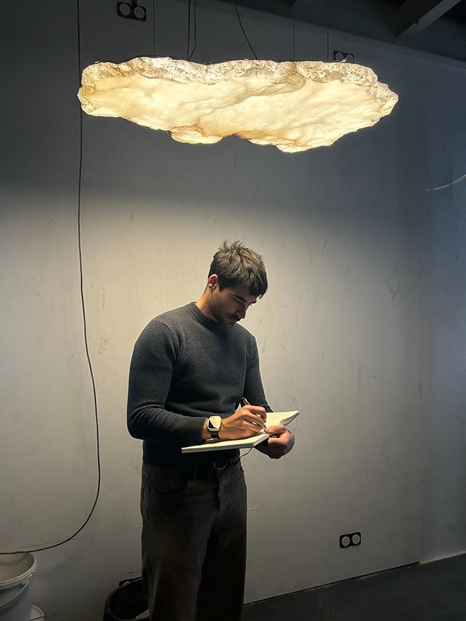 Настоящий технический шедевр, VESUVE NUAGE бросает вызов гравитации, демонстрируя необработанный алебастр во всем его величии. Вдохновленный легкостью облака, этот кулон раскрывает минеральную красоту камня в воздушном и органичном объеме. Его кажущаяся невесомость контрастирует с прочностью материала, создавая мягкое, рассеянное свечение, похожее на парящий в пространстве светящийся туман.