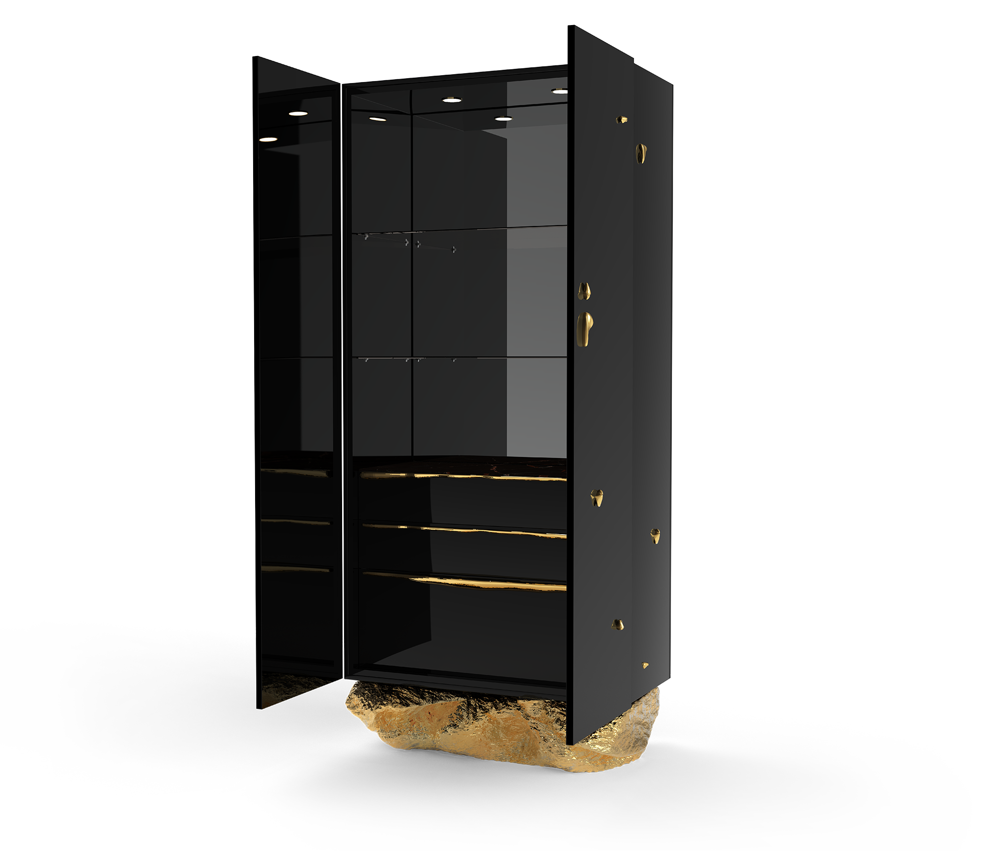 Дизайнерский бар Angra от португальской фабрики BOCA DO LOBO — это воплощение роскоши и художественного мастерства. Вдохновленный живописными скалами Азорских островов, бар отличается изогнутым золотым основанием, придающим ему неповторимый шарм.
