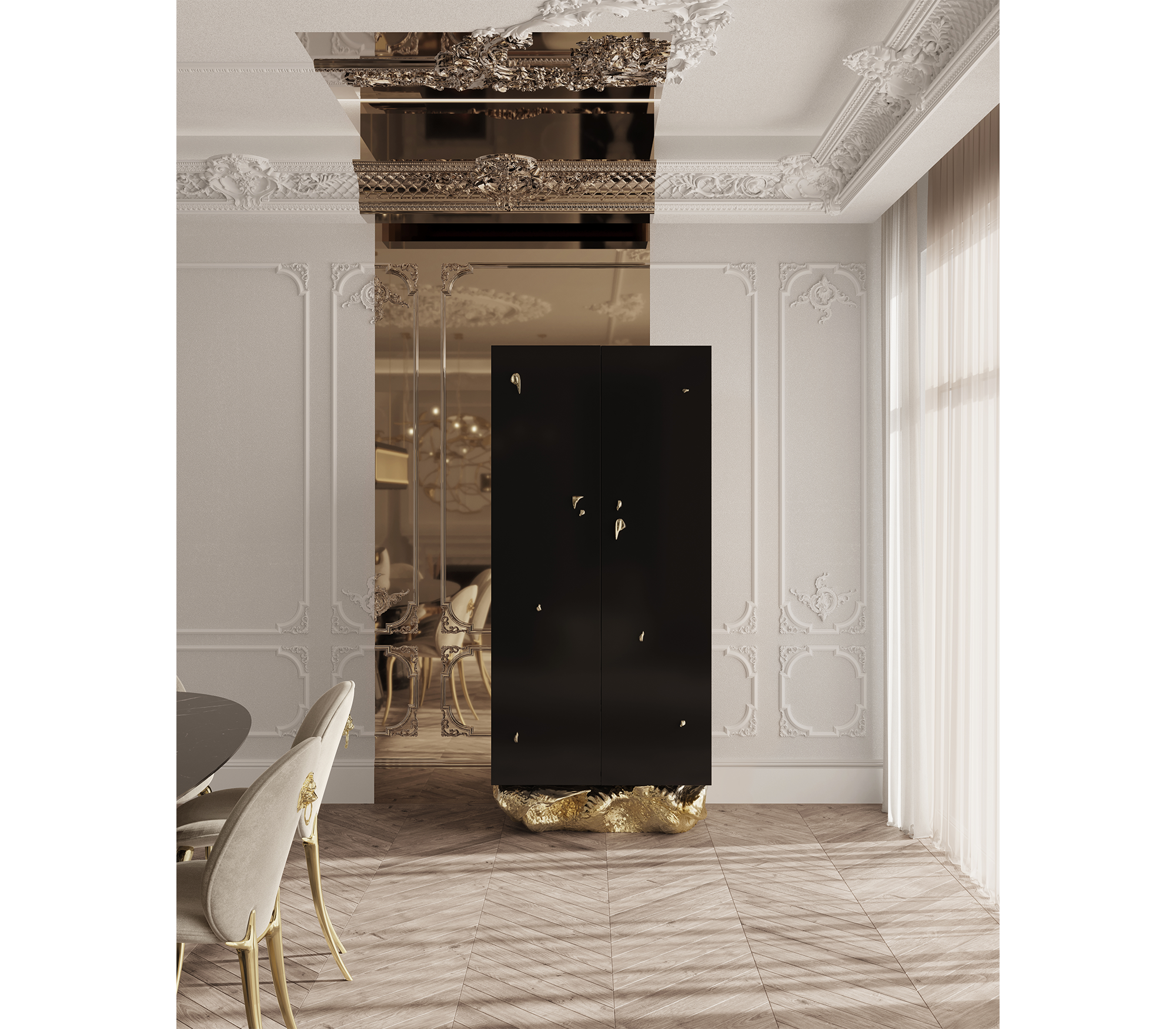 Бар Angra — это ода природной красоте Португалии. Его изогнутое золотое основание напоминает волны, омывающие скалы Ангра-ду-Эроишму, а элегантные линии корпуса создают ощущение динамики и легкости. Каждая деталь продумана до мелочей, что делает этот предмет мебели центральным элементом любого интерьера. Дизайнеры BOCA DO LOBO сумели соединить современные тенденции с классической утонченностью, создав поистине уникальный шедевр.