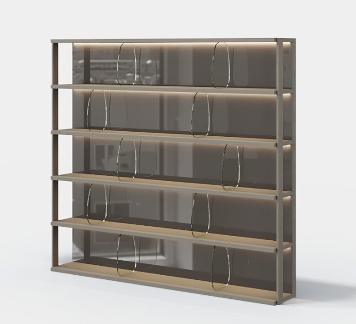 Стеллаж Colline с подсветкой отличается простым и элегантным дизайном в сочетании со встроенной системой освещения, которая выделяет предметы и создает теплую атмосферу. Идеально подходит для современных помещений, где требуется организация и стиль.