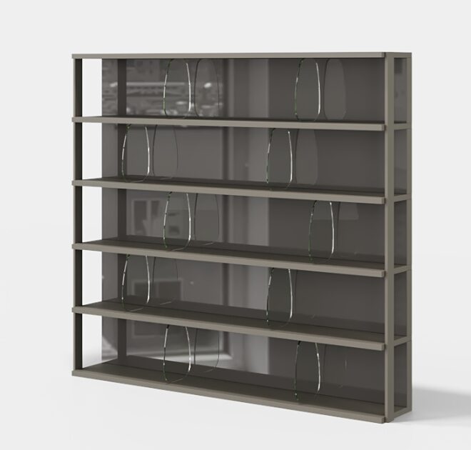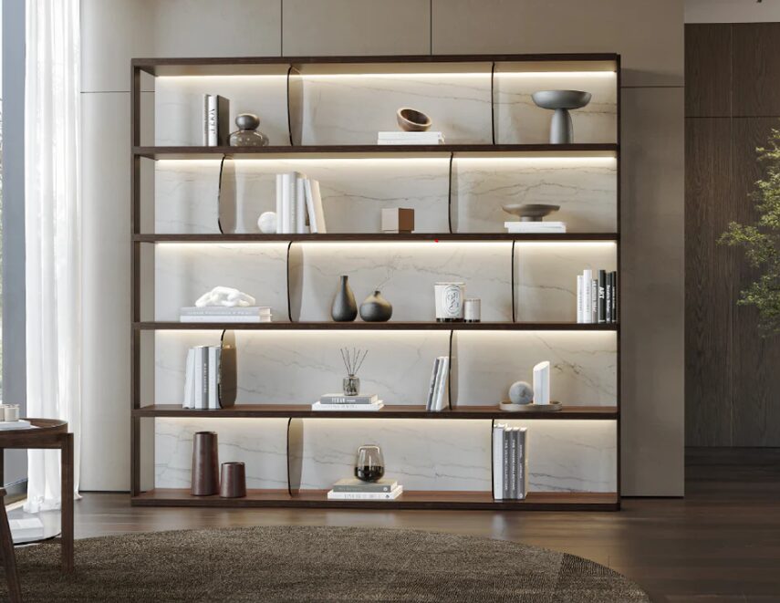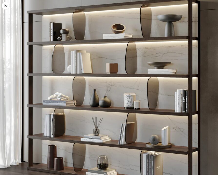 Стеллаж Colline без подсветки отличается простым и элегантным дизайном, идеально подходящим для тех, кто ищет универсальное и функциональное решение для организации и выделения предметов в современных помещениях. Деревянная конструкция подчеркивает естественную текстуру, создавая спокойную и сбалансированную атмосферу.
