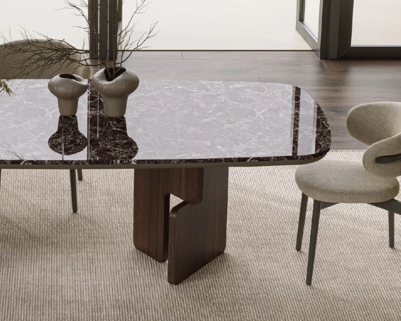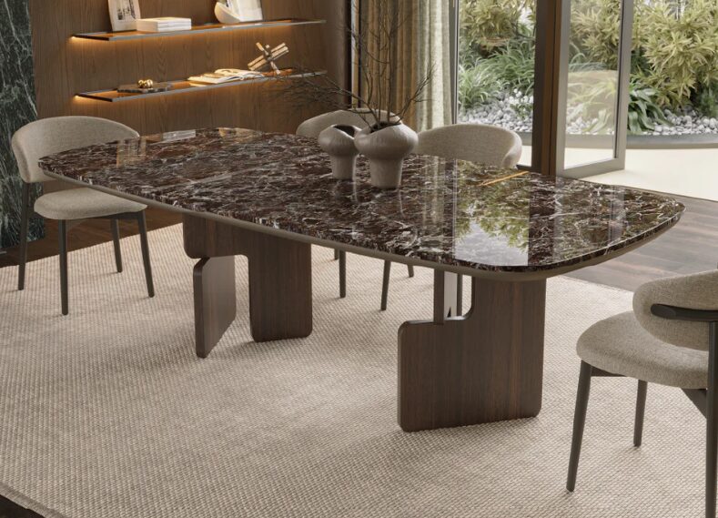 Обеденный стол Colline 2000 отличается простотой линий и сбалансированными пропорциями, создавая ощущение спокойствия и функциональности. Столешница из натурального дерева создает уютное место для встреч, идеально подходящее для столовых, где ценятся предметы первой необходимости и связь с природой.