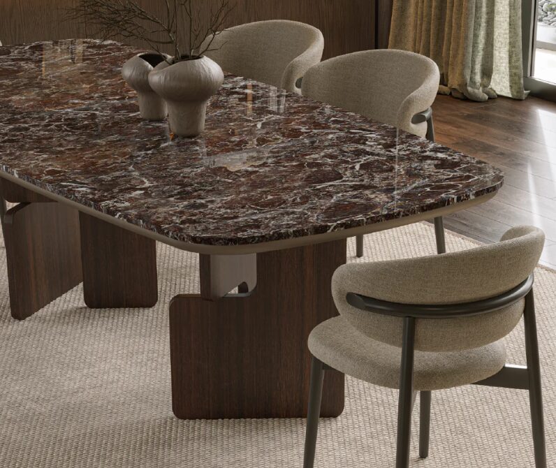 Обеденный стол Colline отличается элегантной простотой и использованием натуральных материалов. Благодаря чистым линиям и сбалансированным пропорциям этот стол идеально подходит для столовых, где стремятся создать спокойную, функциональную и уютную обстановку.