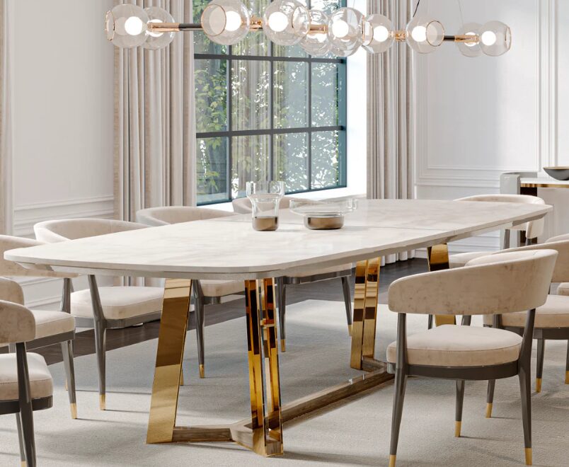 Обеденный стол Collins 3000 отличается внушительными размерами и современным дизайном, предлагая широкую поверхность, идеально подходящую для общественных мероприятий и торжеств. Благодаря минималистичным линиям и прочной конструкции, он сочетает в себе функциональность и элегантный внешний вид, идеально подходит для столовых, где ценят баланс между комфортом и эстетикой.