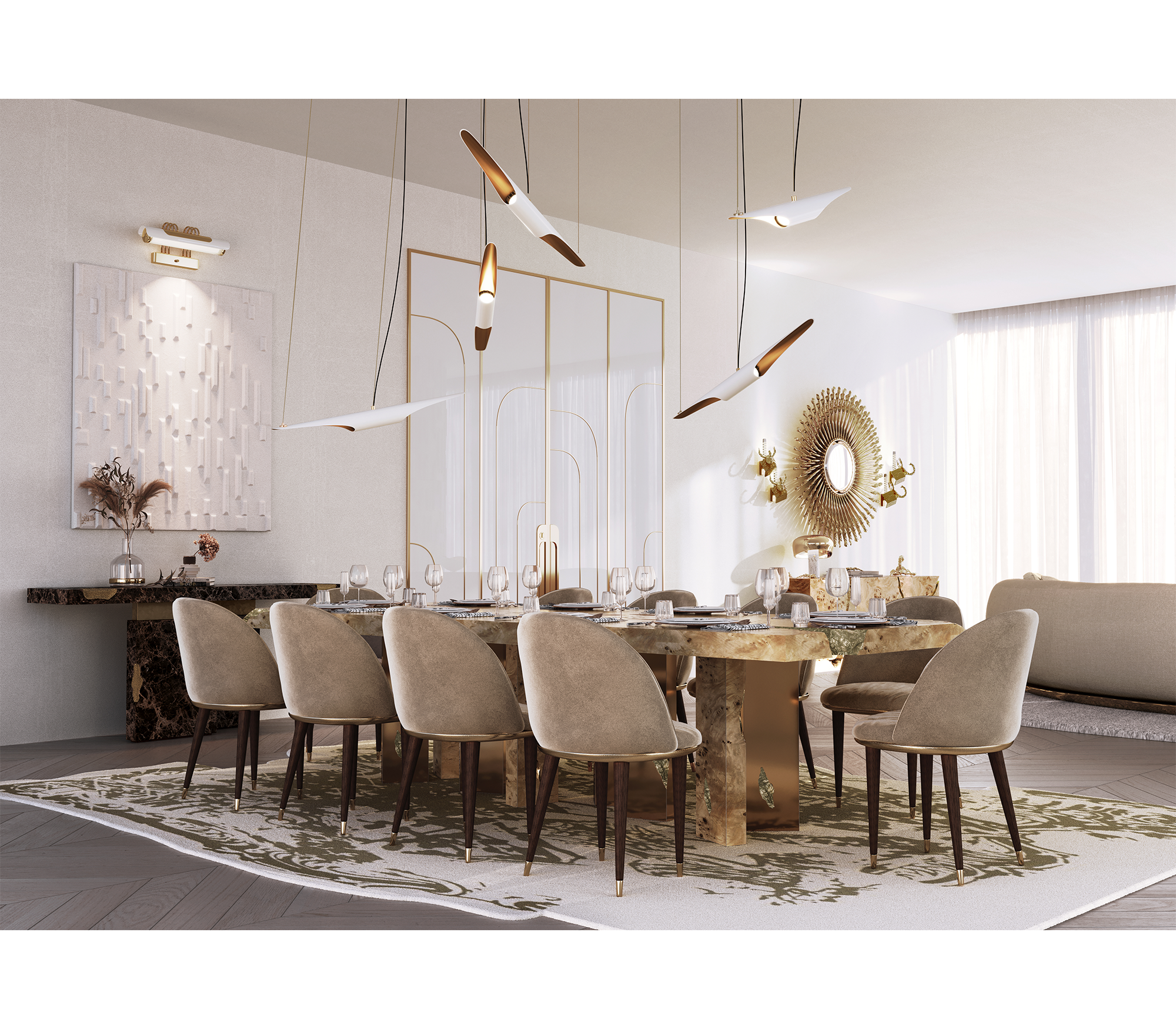 Фабрика BOCA DO LOBO использует только элитные материалы, превращая стол в произведение искусства: