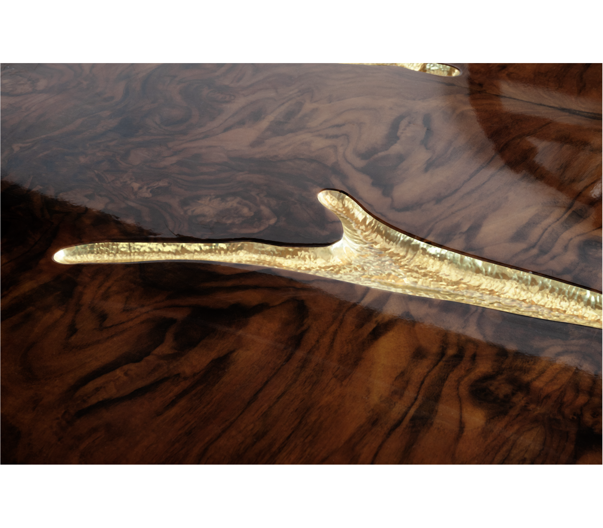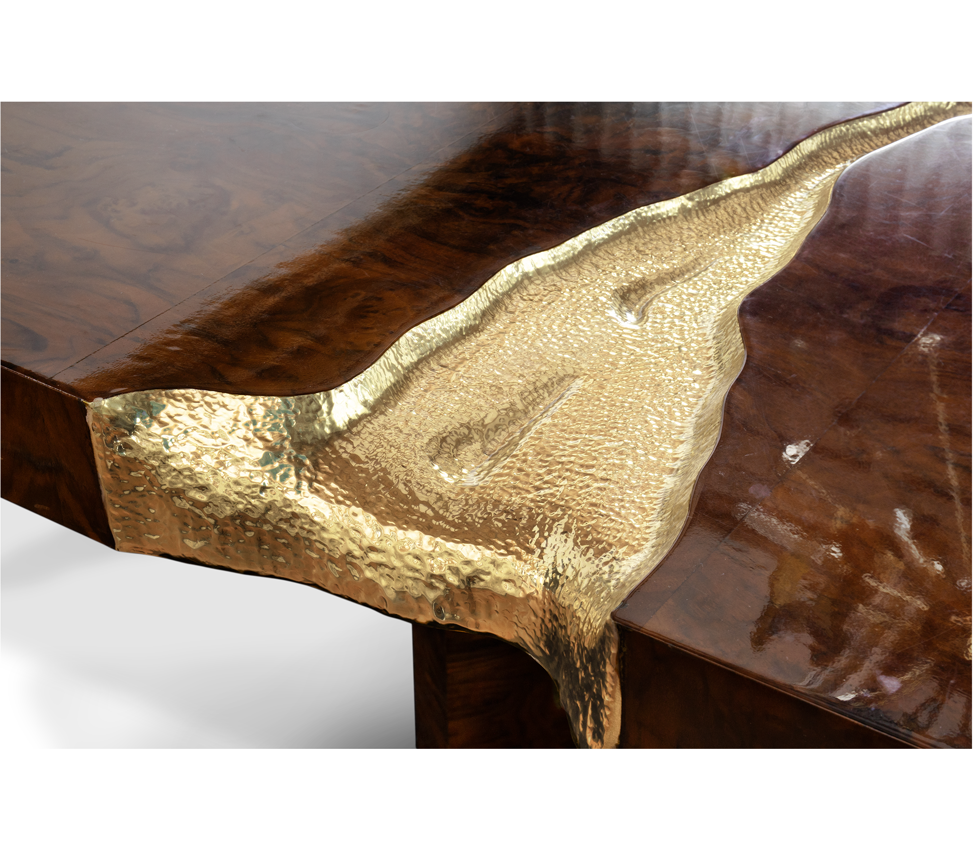 Дизайнерский стол Empire от BOCA DO LOBO — воплощение роскоши и величия в интерьере. Португальская фабрика создала уникальный обеденный стол в стиле Ампир, где трещины на поверхности символизируют историю, а золотая внутренняя отделка — стремление к власти. Безупречная поверхность подчеркивает статус и обещает процветание.