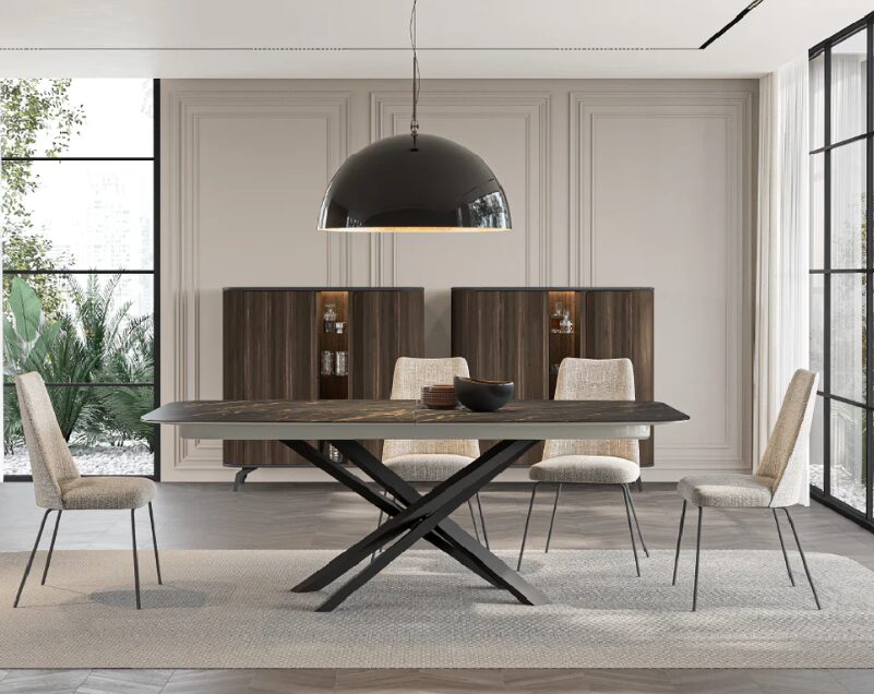 Выдвижной обеденный стол Lig сочетает в себе современный дизайн с практичностью выдвижного стола и идеально подходит для столовых, которые ценят универсальность и стиль. Благодаря простым линиям и легкой конструкции, он легко адаптируется к различным конфигурациям, обеспечивая комфорт и функциональность для любого случая.