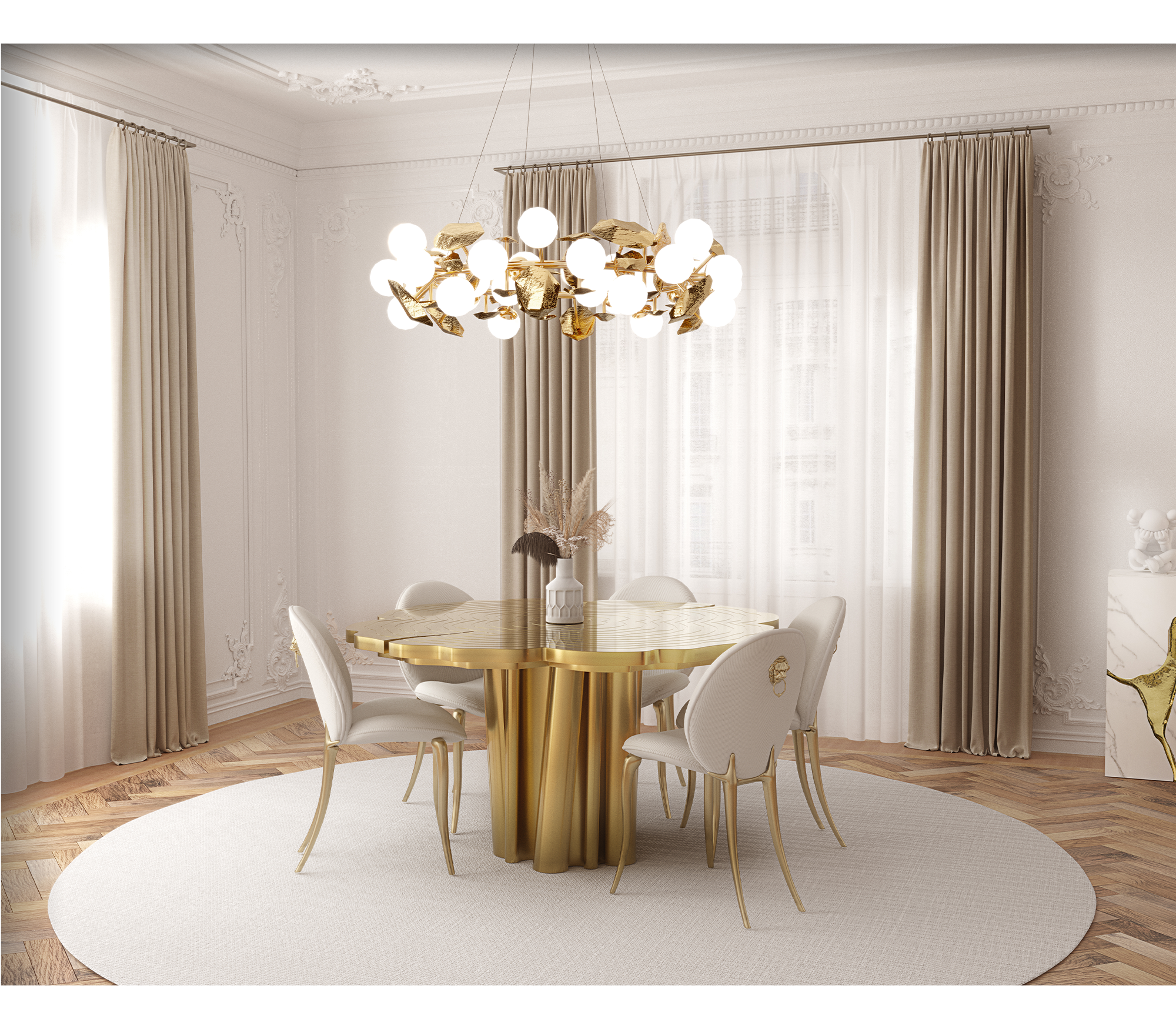 Дизайнерский обеденный стол Fortuna Round от португальской фабрики BOCA DO LOBO — воплощение роскоши и инновационного дизайна. Стол выполнен с эксклюзивной поверхностью из полированной латуни с эффектом патины, придающей интерьеру утонченность и мистическую глубину.