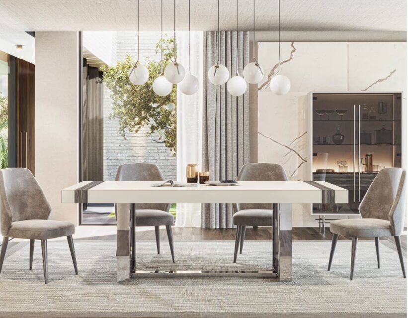 Раздвижной обеденный стол Laer сочетает в себе минималистскую эстетику с универсальностью выдвижного механизма и идеально подходит для столовых, которые ценят адаптивность без ущерба для элегантности. Благодаря простым линиям и тщательной отделке, этот стол предлагает практичное решение для различных потребностей в пространстве.