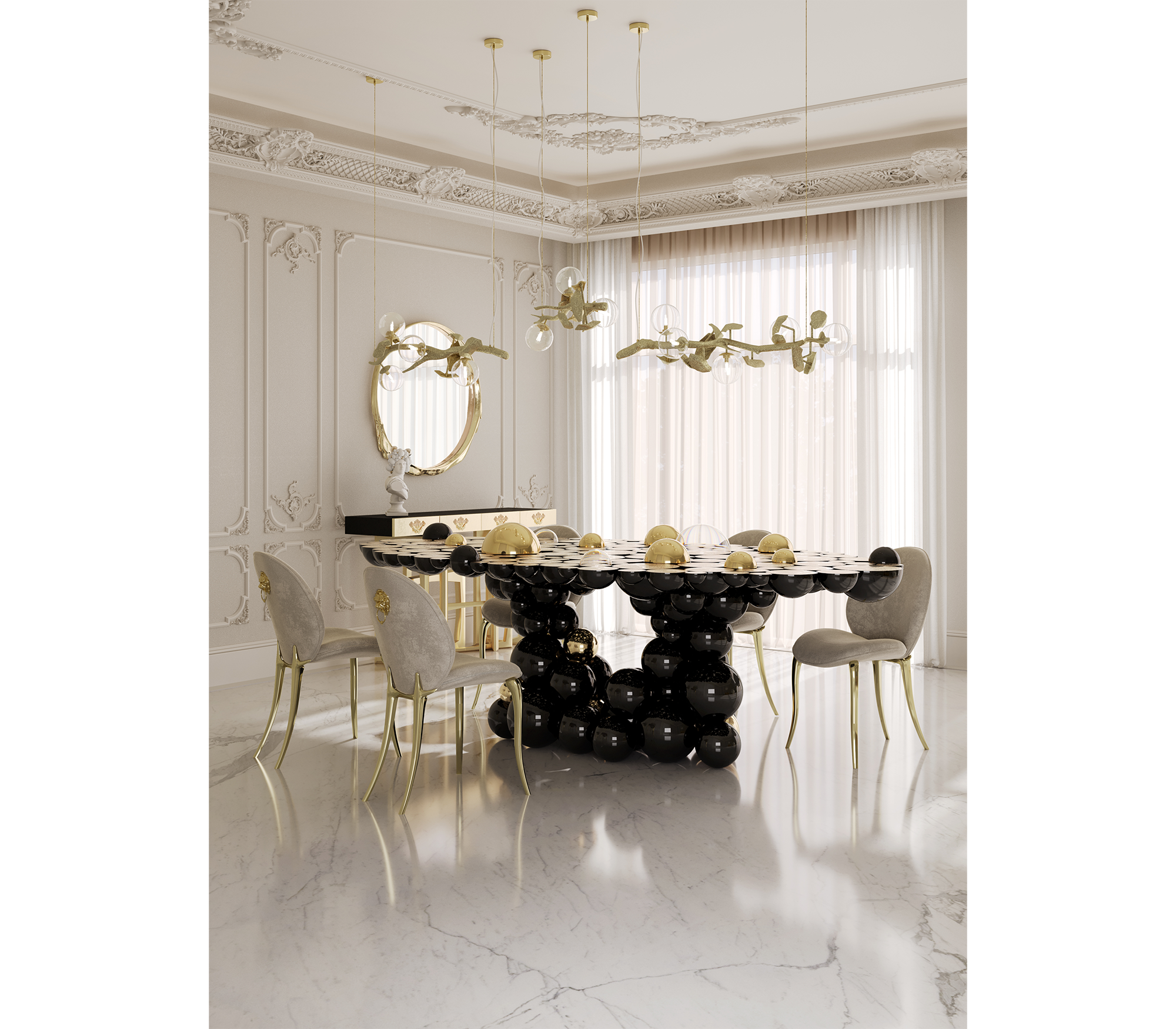 Дизайнерский стол Newton от португальской фабрики BOCA DO LOBO — воплощение роскоши и современного дизайна. Этот обеденный стол создан для ценителей эксклюзивной мебели с безупречными деталями и премиальными материалами.