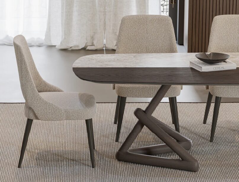 Обеденный стол Raggi длиной 200 см создан для того, чтобы придать столовой изысканности и присутствия. Его изюминка заключается в сочетании деревянных ножек, которые придают основательность и естественность, со столешницей из дерева или лака, что обеспечивает универсальность дизайна.