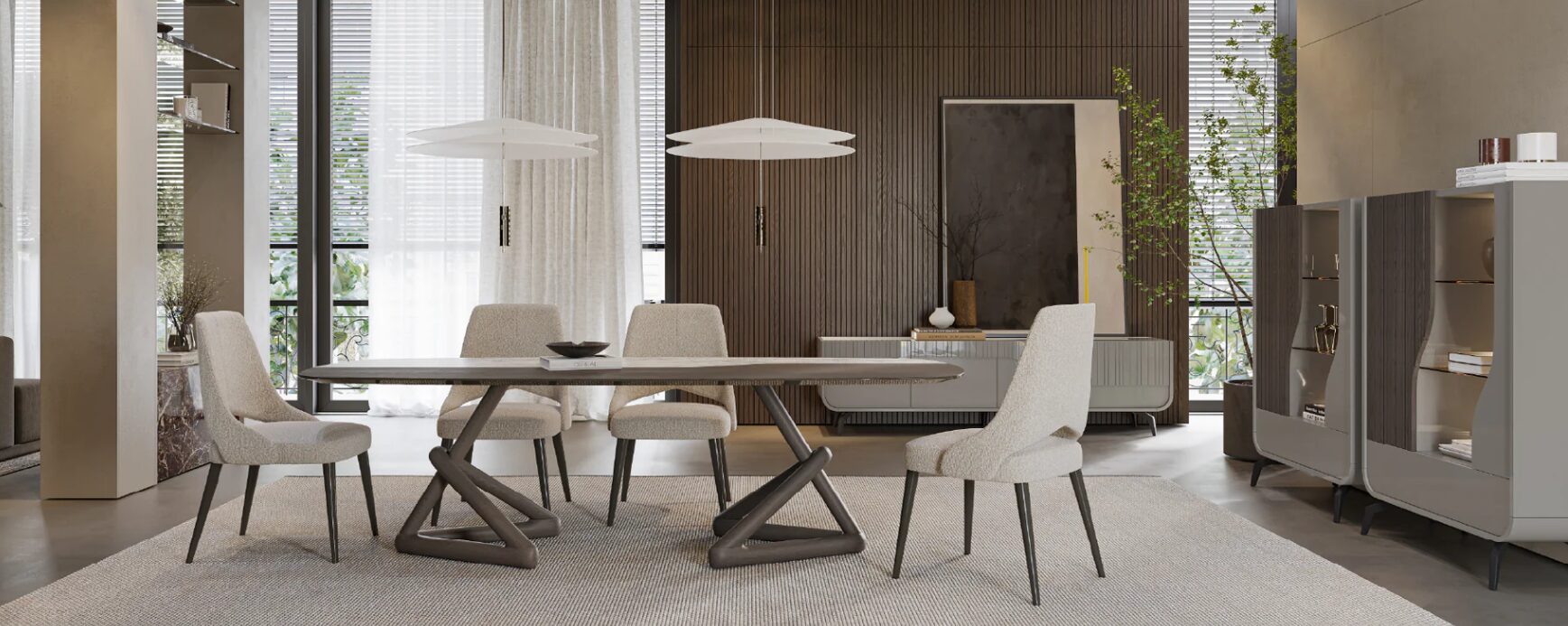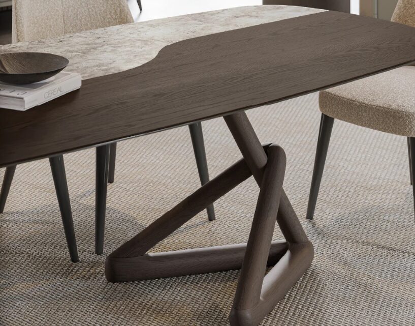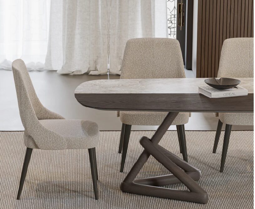 Обеденный стол Raggi длиной 240 см сочетает в себе привлекательность и изысканность, что делает его идеальным для просторных столовых. Деревянные ножки обеспечивают естественность и устойчивость, а столешница может быть выполнена из дерева или покрыта лаком, что позволяет адаптировать ее к различным стилям интерьера.