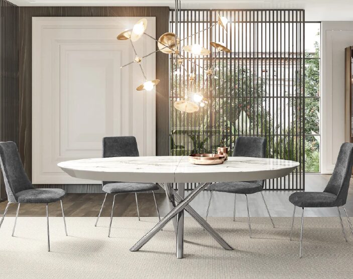 Раздвижной обеденный стол Smile сочетает в себе современную эстетику и практичную функциональность и идеально подходит для помещений, где ценится адаптивность без ущерба для стиля. Благодаря чистым линиям и изысканной отделке этот стол является универсальным решением для различных пространственных потребностей.