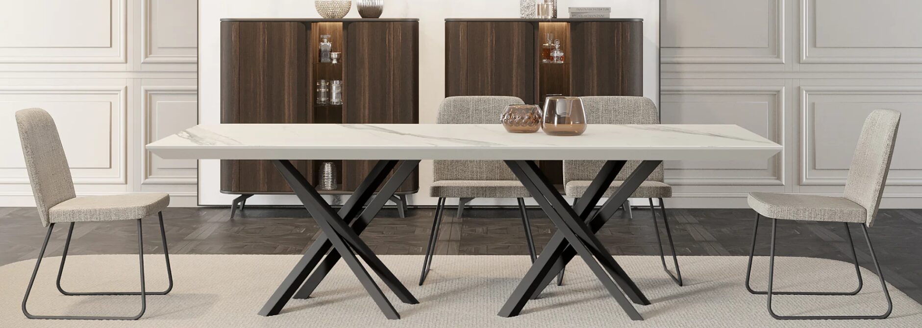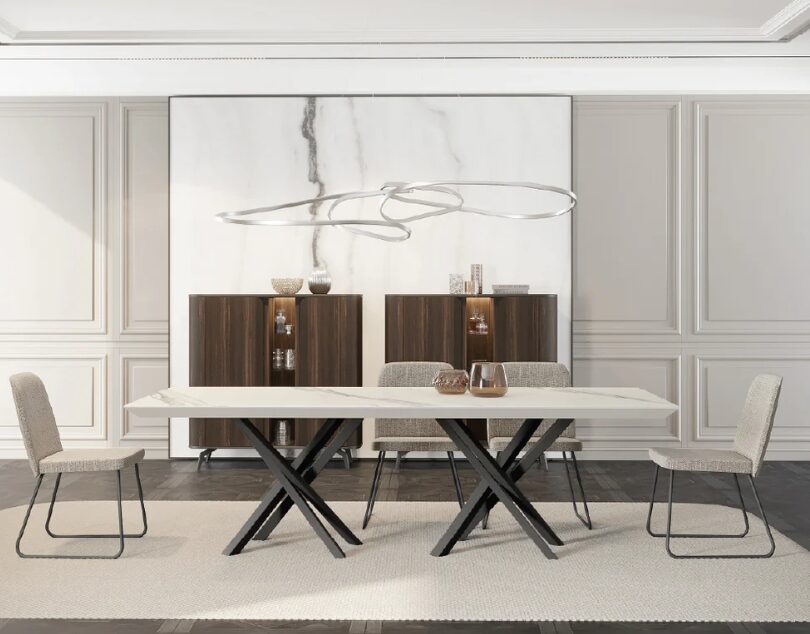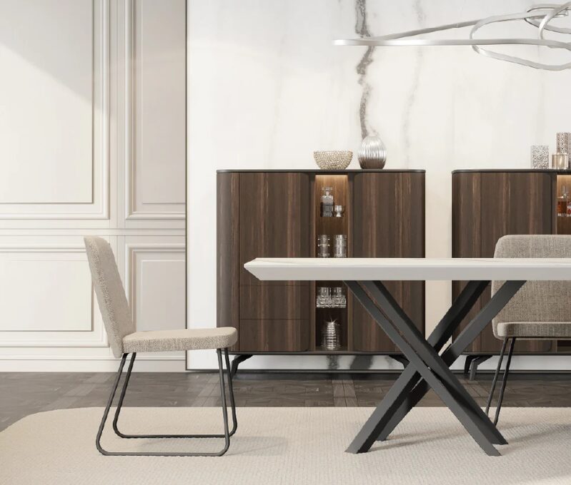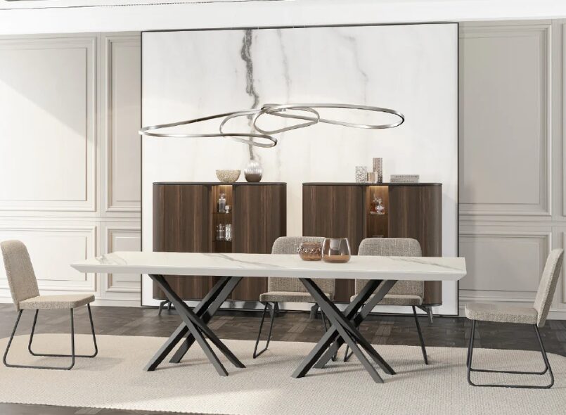 Обеденный стол Tepui 2600 сочетает в себе четкие линии и благородные пропорции, являясь впечатляющим украшением столовых, в которых ценятся функциональность и эстетика минимализма. В его сбалансированном дизайне сочетаются надежность и элегантность, создавая теплую и утонченную атмосферу.