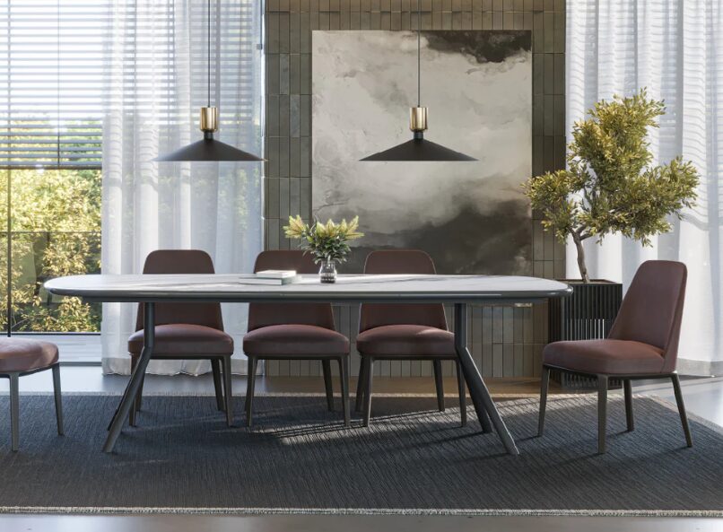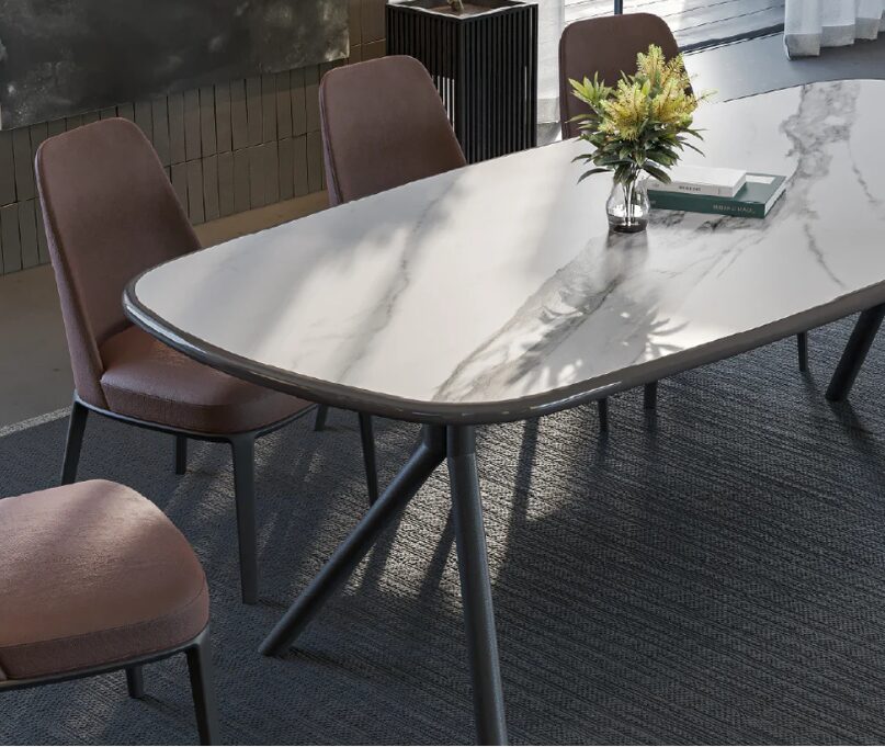 Обеденный стол Vasari 2000 отличается современными линиями и сбалансированными пропорциями, предлагая просторную и функциональную поверхность. Благодаря прочной конструкции и изысканной отделке этот стол идеально подходит для столовых, где ценят сочетание элегантности и комфорта.