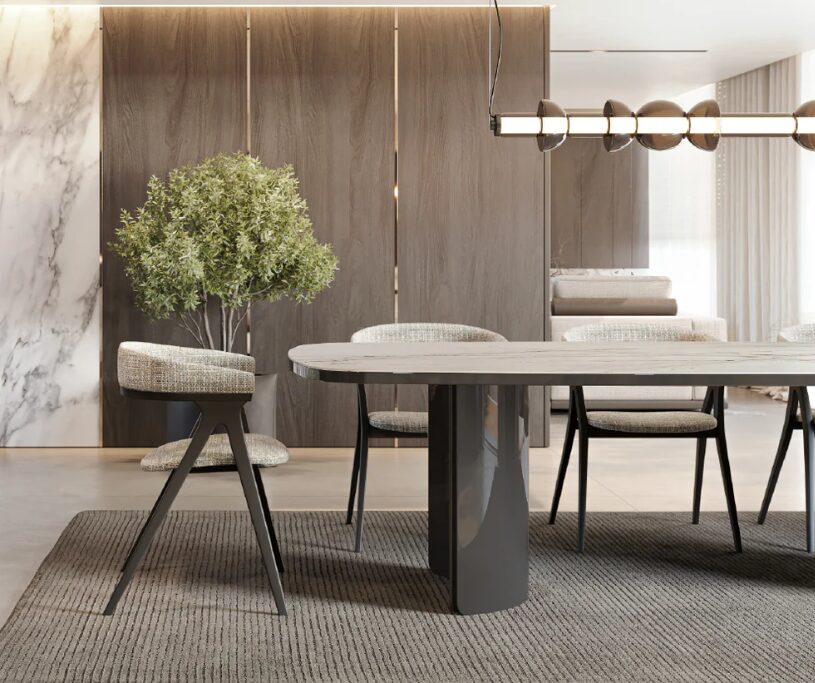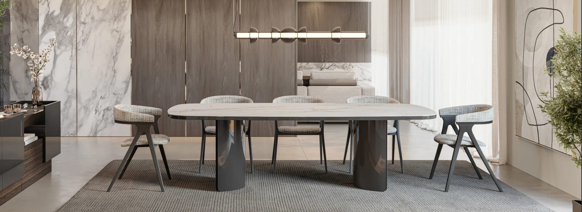 Обеденный стол Vollmer 2000 длиной 2000 мм отличается широкими габаритами, не теряя при этом своей сдержанной эстетики. Легкая конструкция и сплошная столешница создают солидную и безмятежную атмосферу, идеально подходящую для обеденных залов, где сочетаются строгость и визуальная плавность.