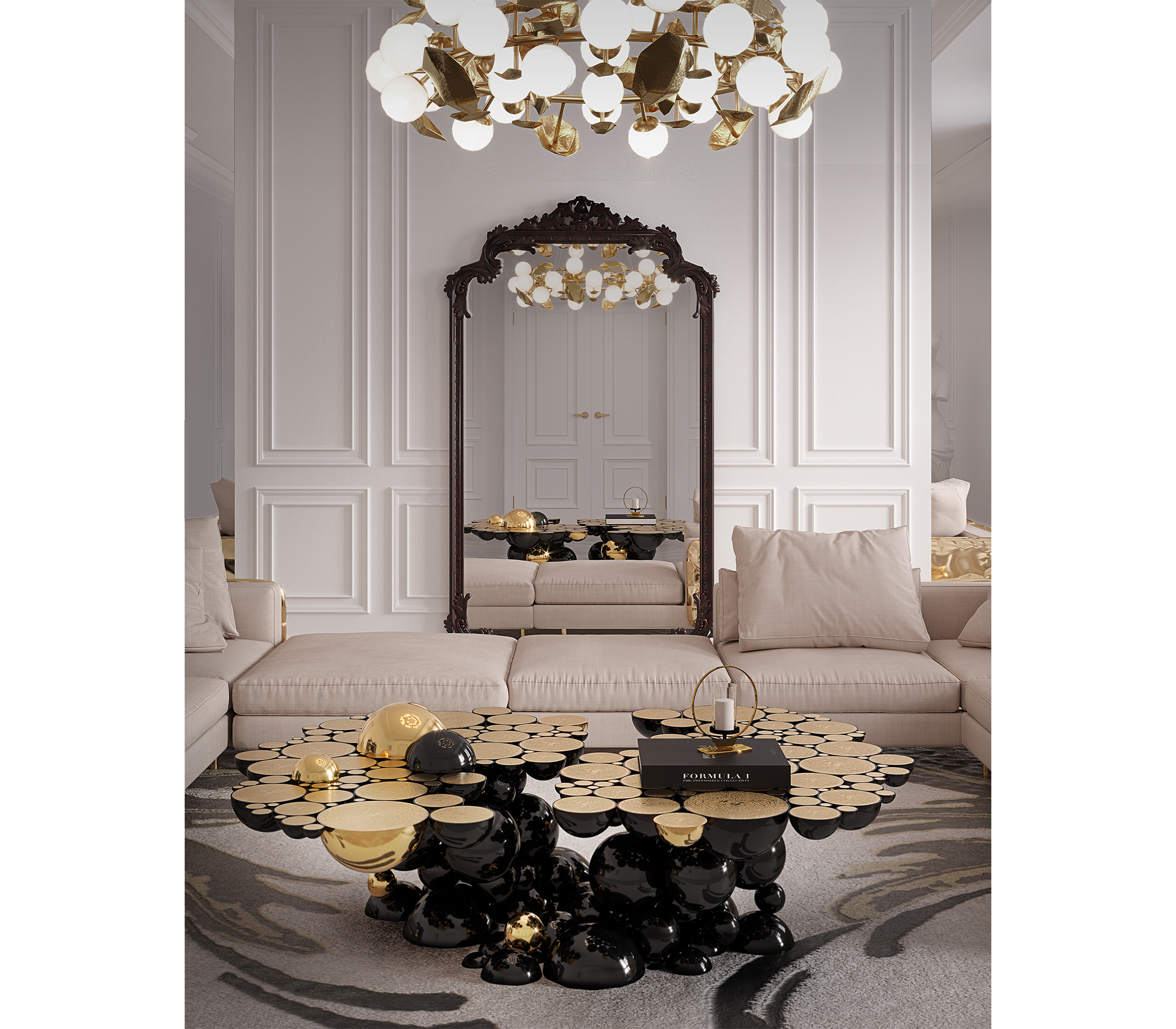 Дизайнерский столик Newton black от португальской фабрики BOCA DO LOBO — воплощение роскоши и современного дизайна. Этот центральный стол создан для ценителей эксклюзивных интерьерных решений, сочетая неожиданные формы с безупречным качеством исполнения.