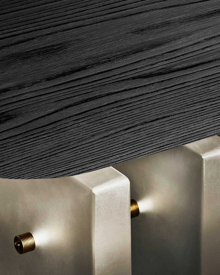 СЕРИЯ SEGMENT ОТЛИЧАЕТСЯ ВИЗУАЛЬНОЙ ИГРОЙ ПЛОТНОСТИ И ЛЕГКОСТИ. ПОЛУПРОЗРАЧНАЯ, МЯГКО ЗАКРУГЛЕННАЯ ОСНОВА ИЗ СМОЛЫ ПОДЧЕРКИВАЕТ ОБЪЕМ СТОЛЕШНИЦЫ, ПОКРЫТОЙ ЛАКОМ ИЛИ ОБРАБОТАННОЙ ЯСЕНЕМ.