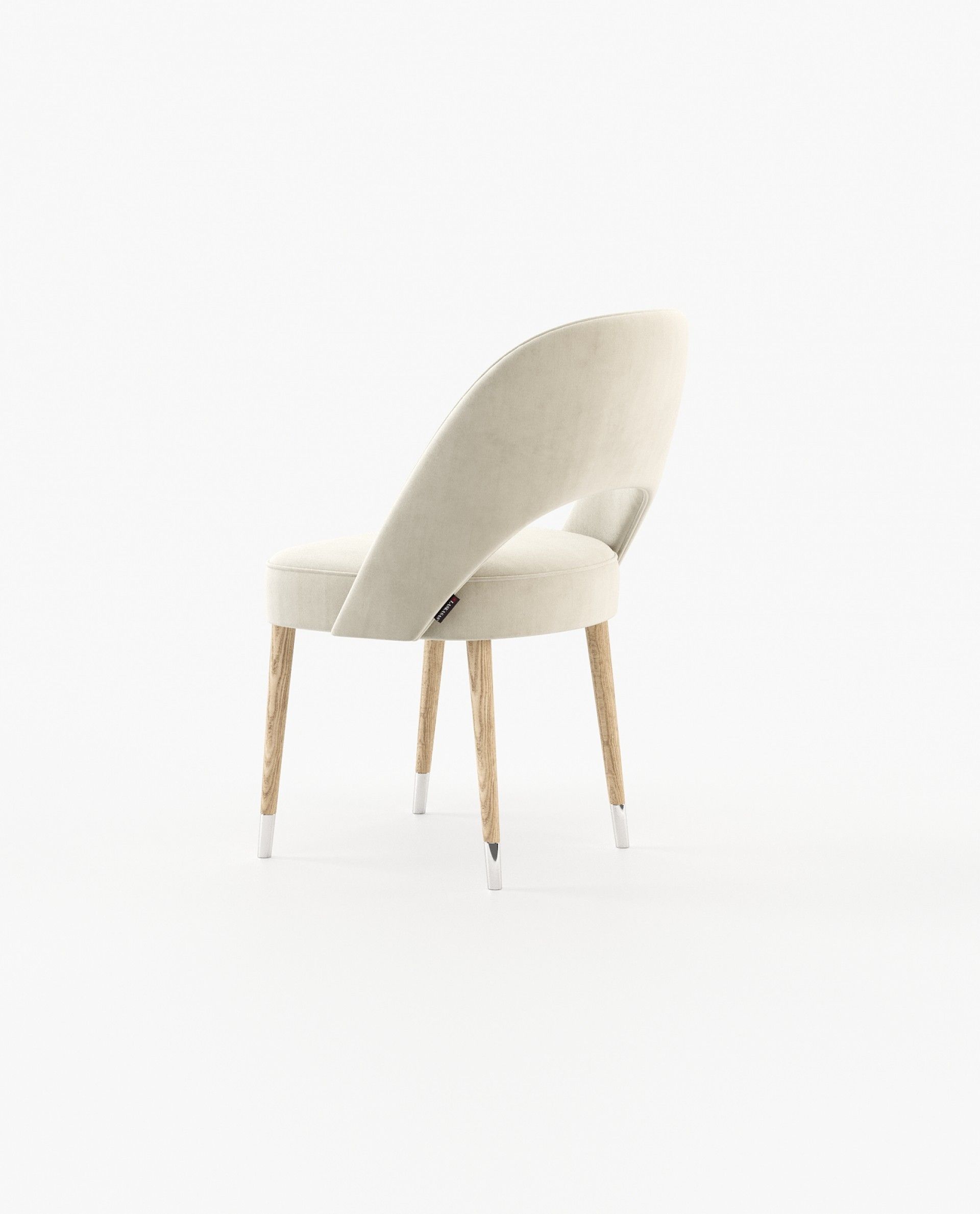Дизайнерский стул Amour от португальской фабрики LASKASAS — воплощение элегантности и романтики в интерьере. Открытая изогнутая спинка с плавными линиями создаёт эффектный контраст с лаконичным сиденьем, добавляя помещению лёгкость и стиль.