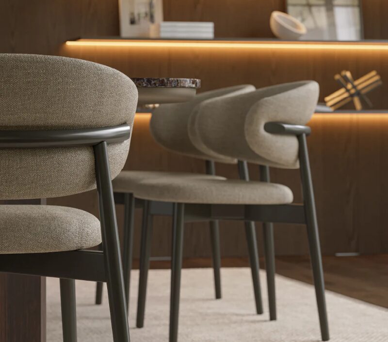 Стул Colline отличается вдохновленным природой дизайном, сочетающим простые линии и высококачественные материалы, что привносит комфорт и элегантность в любую столовую. Идеально подходит для помещений, где ценится сбалансированная и привлекательная эстетика.