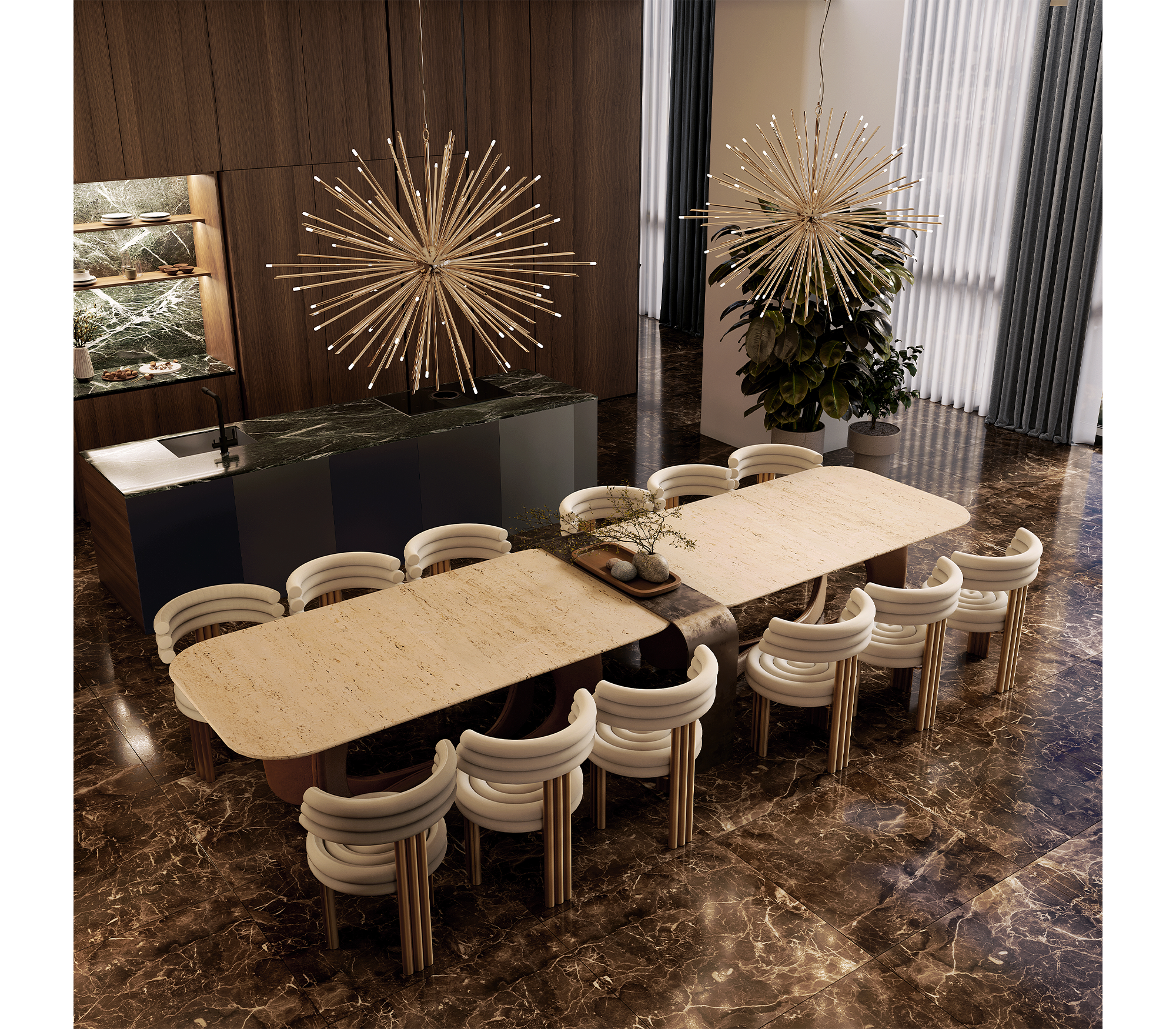 Стул Kerr — результат творческого союза фабрики BOCA DO LOBO и студии Masquespacio. Его плавные линии и скульптурный силуэт напоминают о классической голливудской элегантности, переосмысленной в современном ключе. Эксклюзивная форма спинки, напоминающая изгиб театрального занавеса, придает мебели динамику и театральный шарм. Каждый угол, каждый контур тщательно продуман, чтобы создать визуальный баланс между смелостью и утонченностью.