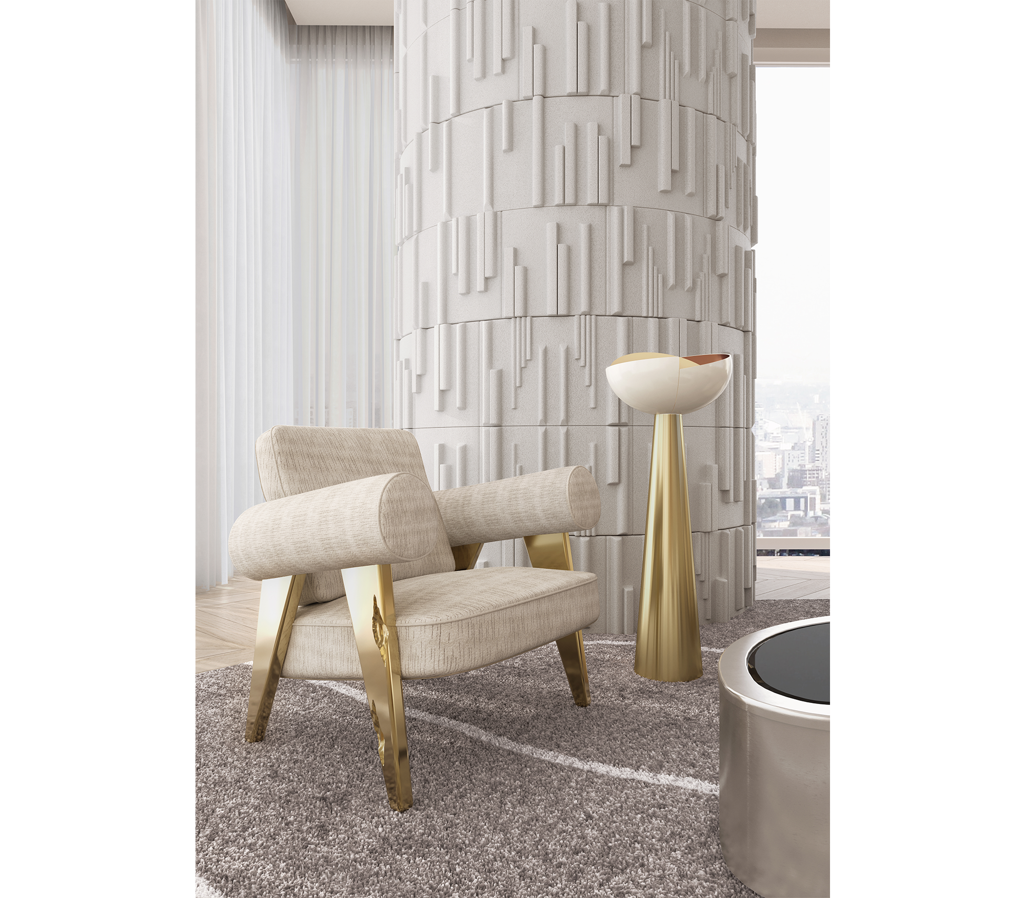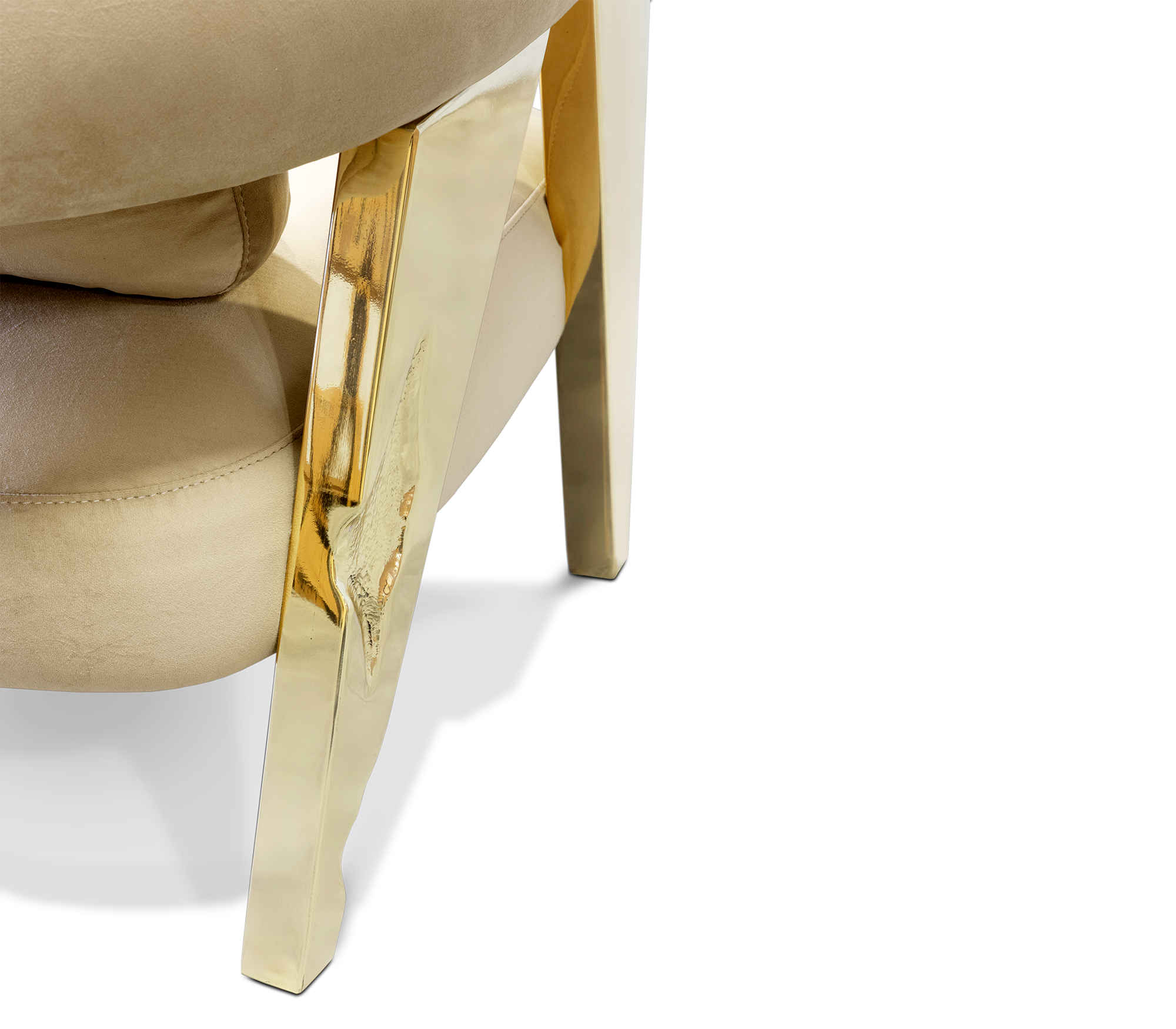 Силуэт кресла Ethereal — это воплощение легкости и утонченности. Плавные линии спинки и мягкие очертания подлокотников создают ощущение воздушности, а продуманные пропорции обеспечивают идеальную эргономику. Дизайнеры BOCA DO LOBO вдохновлялись природными формами, что придает креслу органичную динамику и неповторимый шарм.