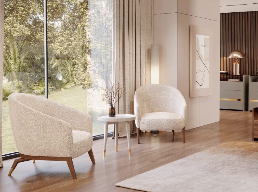Кресло Gihai II сочетает в себе современный дизайн с мягкими линиями и удобной обивкой, создавая элегантный и располагающий вид в любой гостиной. Идеально подходит для помещений, где ценят сочетание комфорта и современной эстетики.
