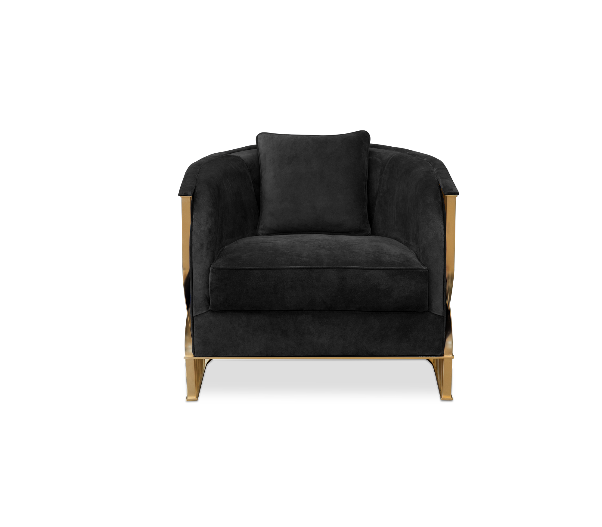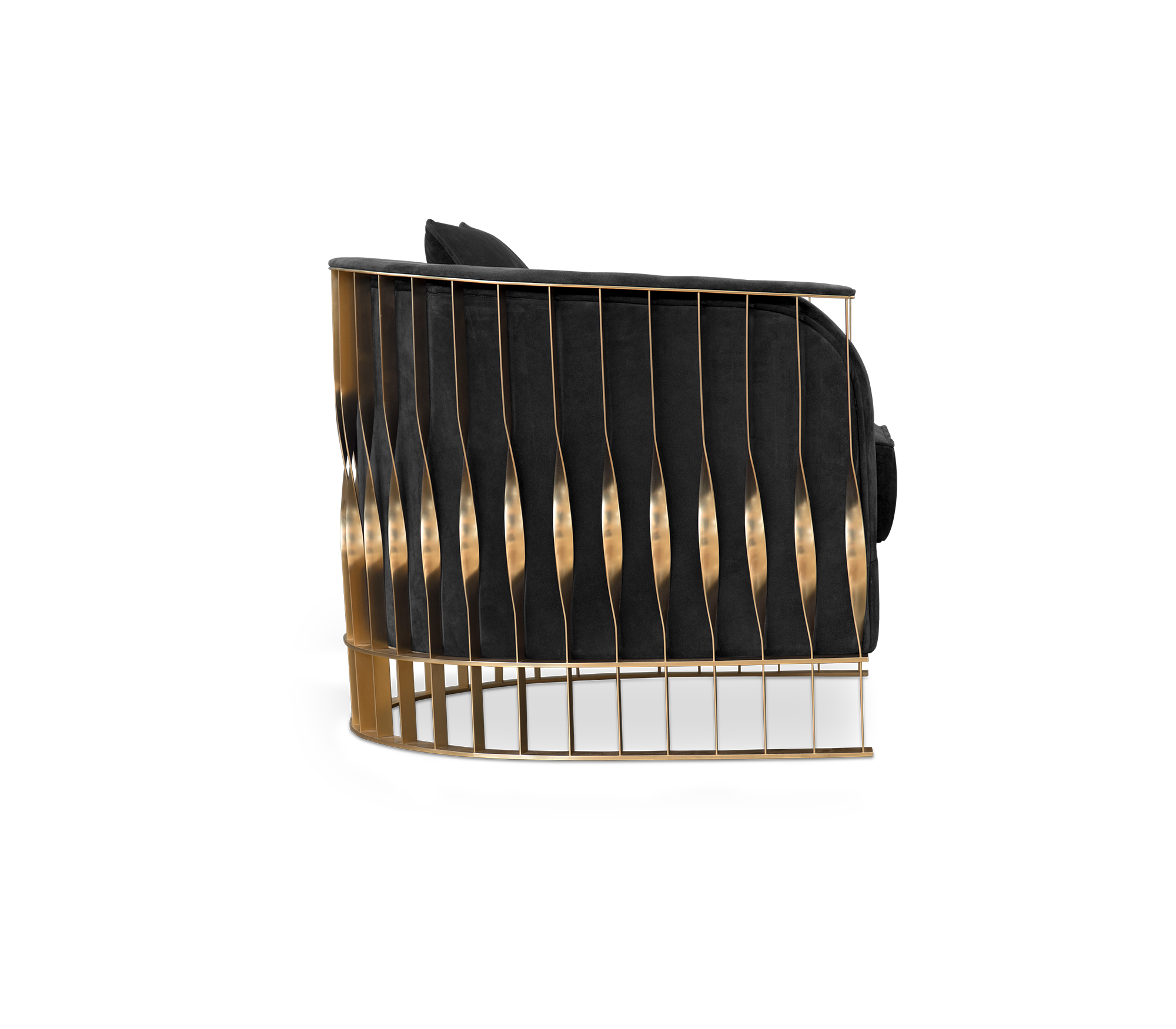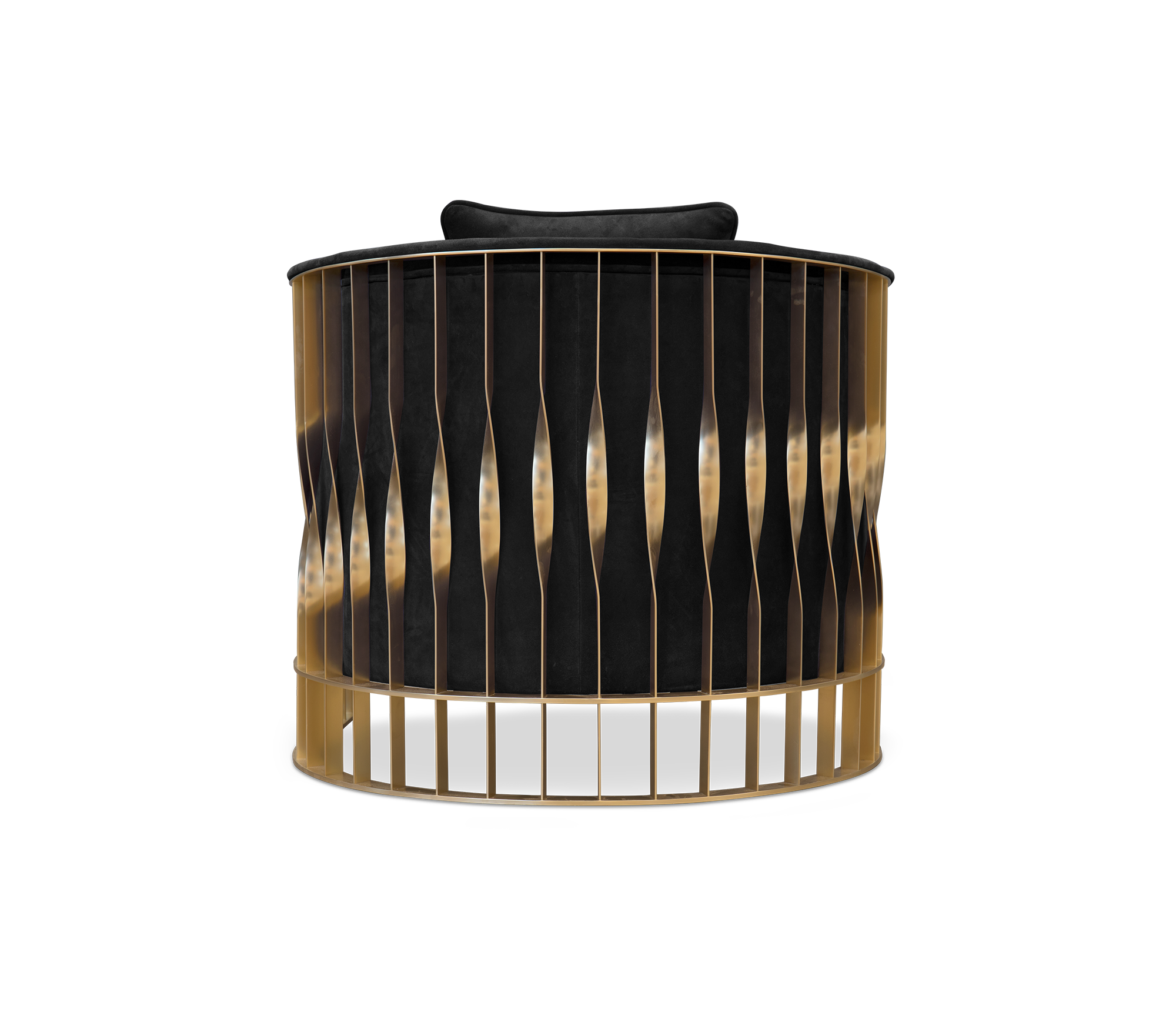 Кресло вдохновлено элегантностью браслета-манжеты, сочетает мягкую обивку с витым глянцевым металлическим основанием. Идеально подходит для современных интерьеров, добавляя им утонченности и стиля.