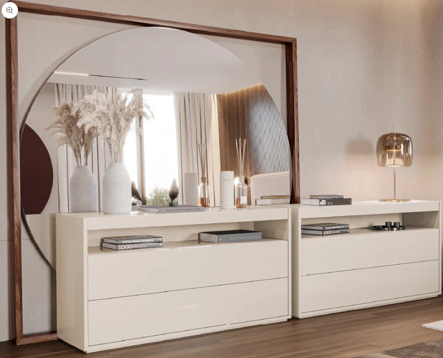 Зеркало Hicardi отличается современным дизайном и геометрическими деталями, которые создают утонченный визуальный эффект. Идеально подходит для прихожих, гостиных или спален, которым требуется смелый и современный элемент декора.