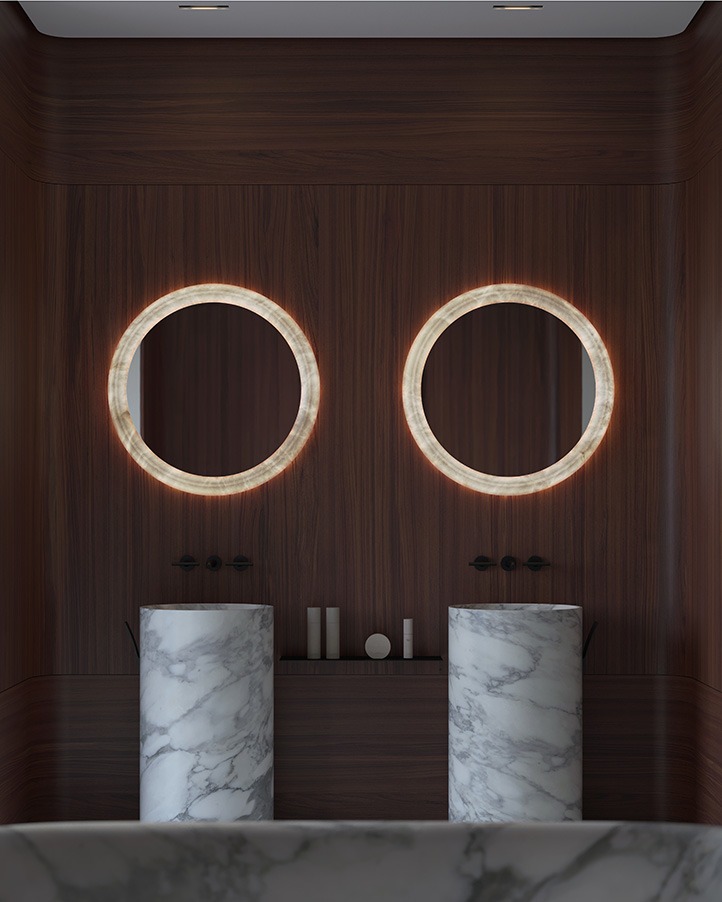 Благодаря удлиненному и смелому силуэту, NORA подчеркивает природную силу алебастра, придавая ему современный скульптурный оттенок. Модель NORA может устанавливаться горизонтально или вертикально, в зависимости от желаемого эффекта и глубины резкости. Доступный в размерах 55,1 × 23,6 дюйма и 63 × 31,5 дюйма, он воплощает в себе идеальный баланс между дизайном и освещением.