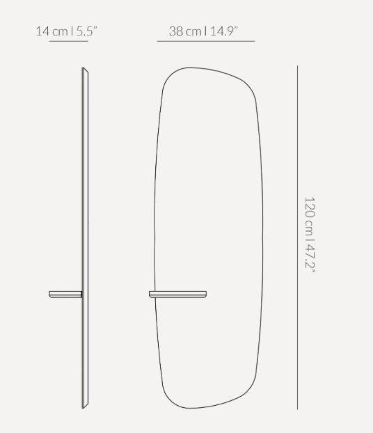 Настенное или напольное зеркало отличается оригинальным подносом ручной работы из натурального ореха с плавными линиями. Дизайн — Андрес Мартинес.