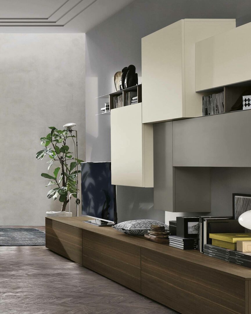 Итальянская гостиная группа A106 от фабрики TOMASELLA – это воплощение элегантности и современного дизайна. С двойной глубиной навесных секций и металлическими элементами Raster, эта мебель создает впечатление динамичности и многослойности.