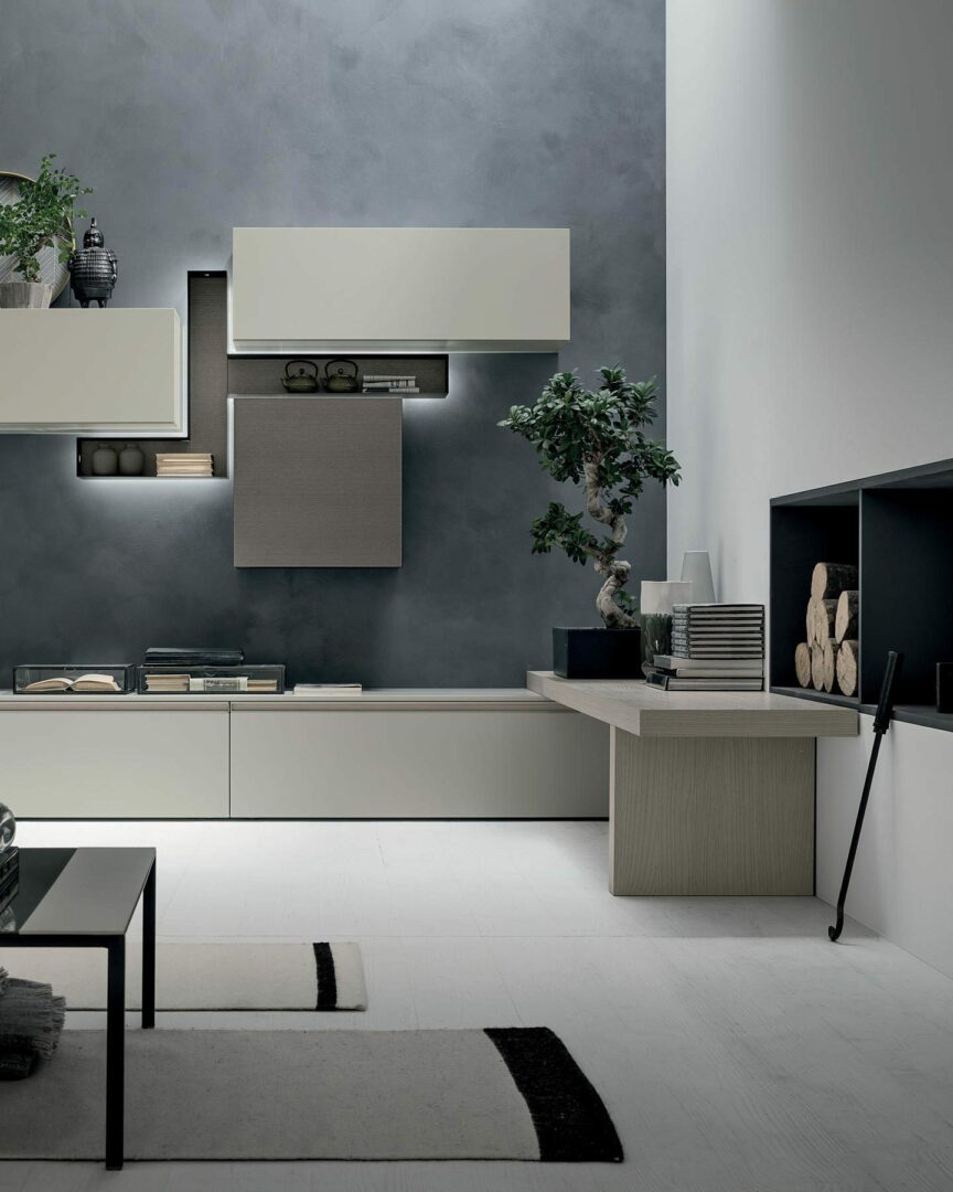 Гостиная группа A128 выделяется уникальным открытым металлическим элементом Tetris с задней подсветкой, который придаёт интерьеру изюминку. Угловой модуль Panka дополняет боковую стенку, создавая легкую и стильную опорную поверхность.