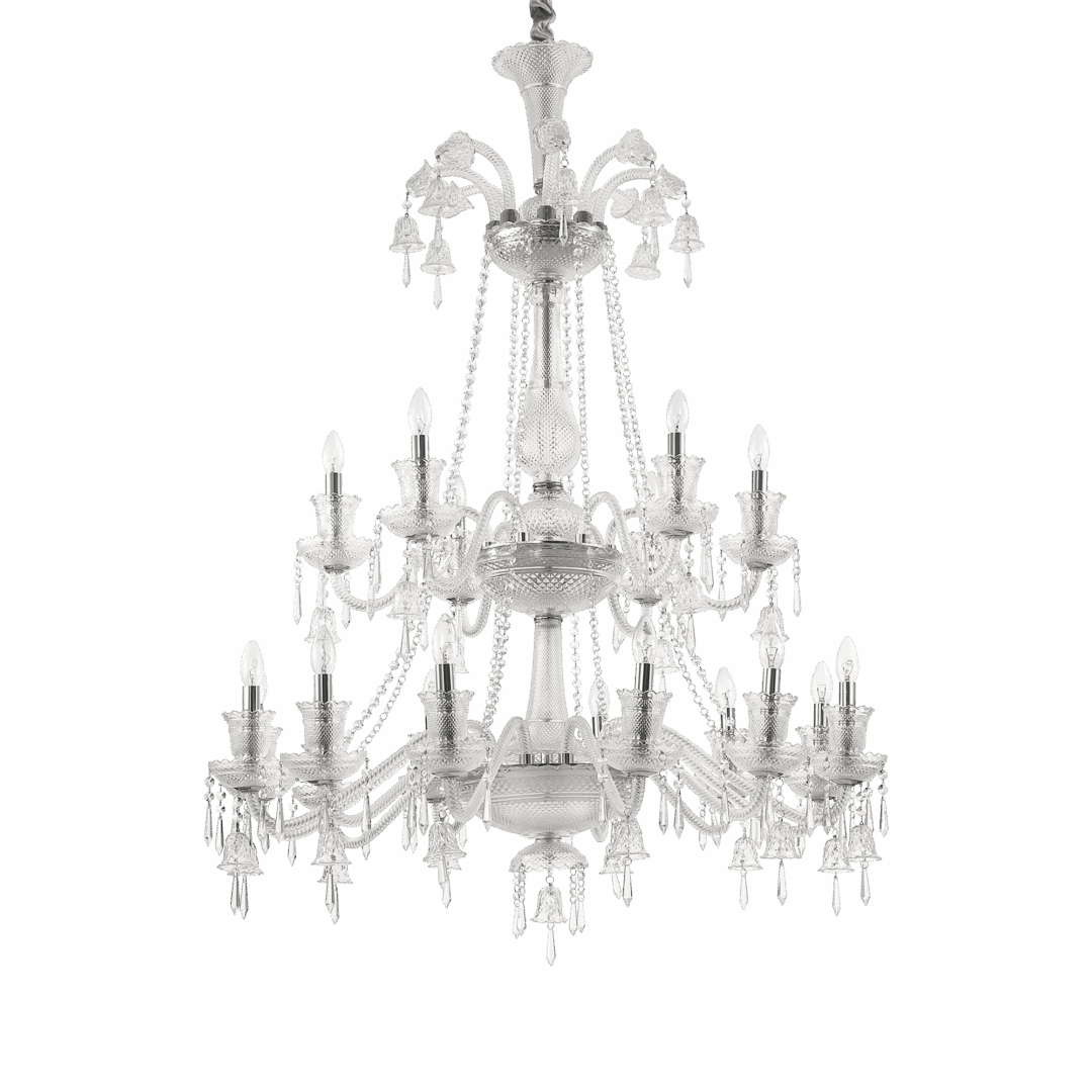 Хрустальная люстра REDENTORE от итальянской фабрики IdeaL LUX — это воплощение изысканности и роскоши. Выполненная вручную, она доступна в двух размерах: SP8 (Ø 84 x H min 95 / max 205 см) и SP18 (Ø 102 x H min 145 / max 254 см), что позволяет выбрать идеальный вариант для любого интерьера.