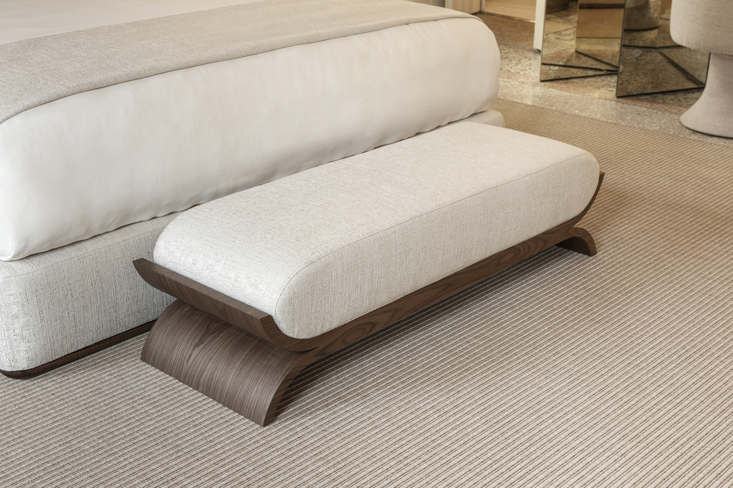 Скамья Alcova представляет собой идеальный баланс между легкостью и прочностью. Ее толстая подушка создает смелый, но привлекательный образ, обеспечивая как комфорт, так и визуальное воздействие.