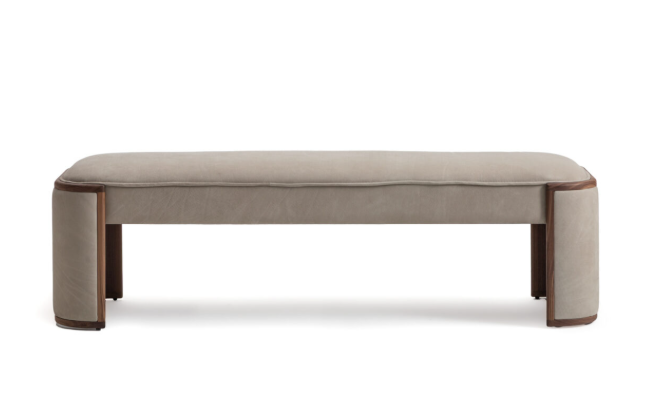 Lorinda-это элегантная банкетка , с обтянутыми кожей боками, которые нежно обнимают сиденье, также обитое оливковой кожи Salotti.