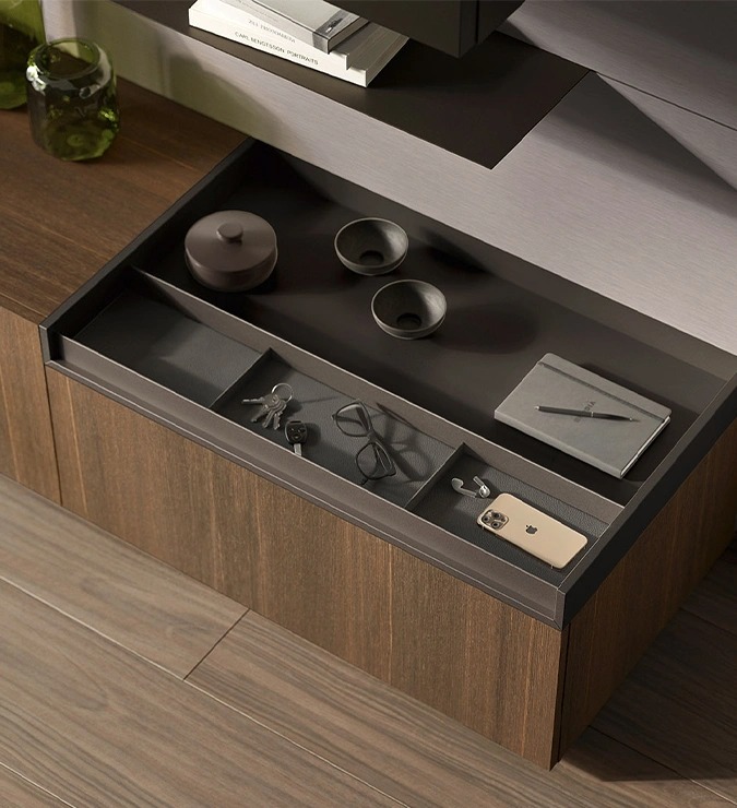 Собирать, выставлять, организовывать — вот функции лотков. Включение одного или нескольких разделителей позволяет создавать пространства, адаптированные к любой потребности, даже с дном из искусственной кожи, чтобы добавить нотку дополнительной изысканности. Их размеры модульны и совместимы с элементами молнии.