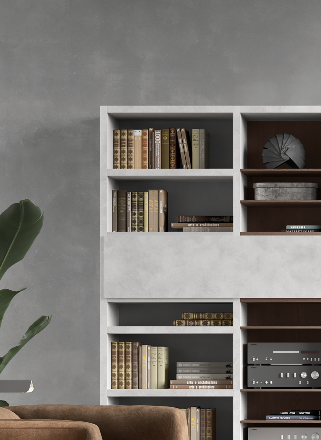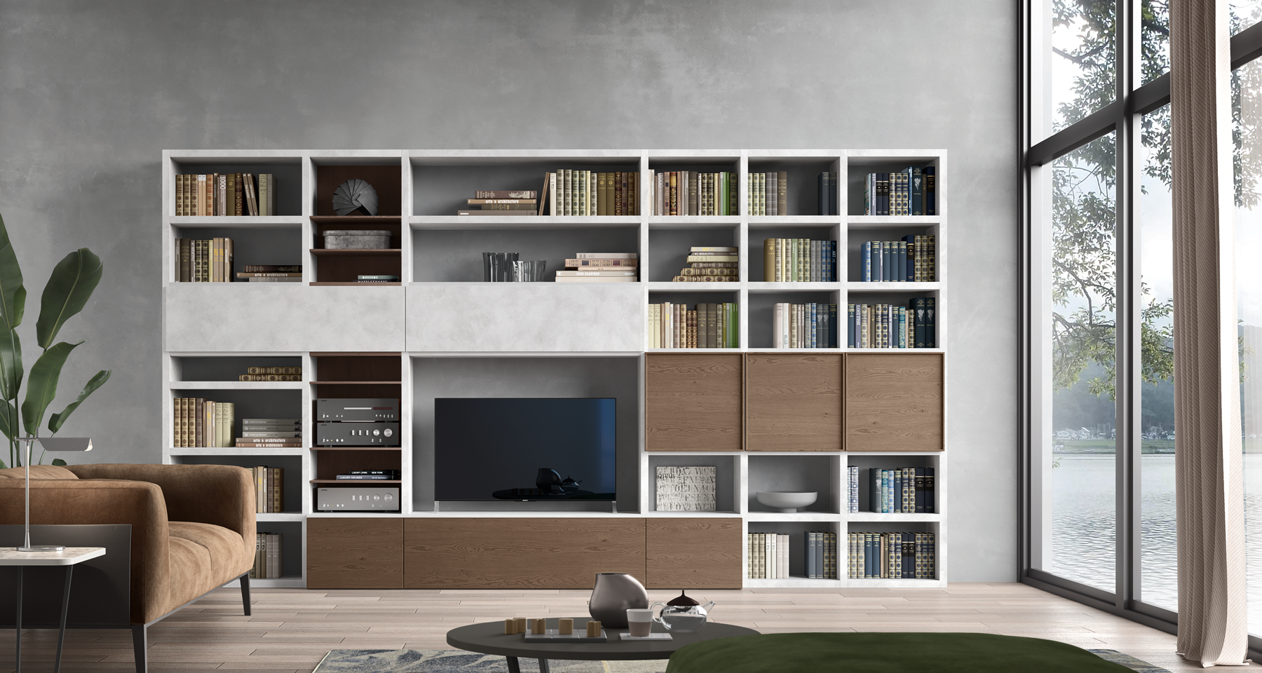Гостиная группа имеет размеры: ширина (L) 4086 мм, высота (H) 2326 мм, глубина (P) 362/398 мм.