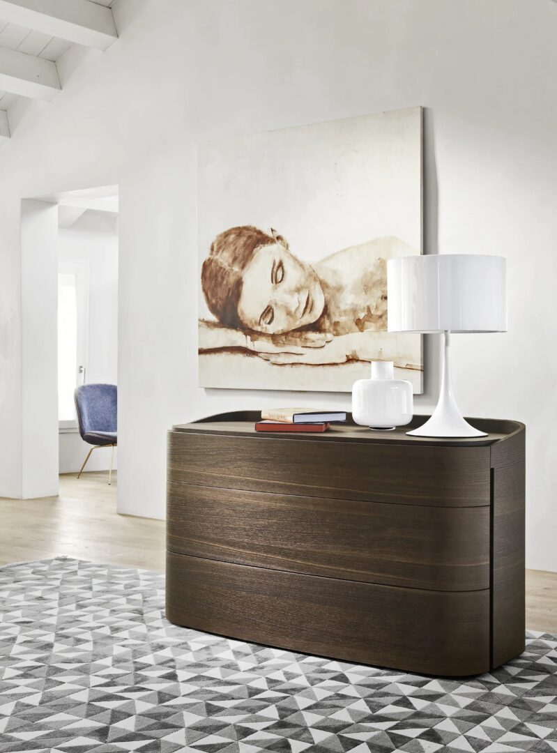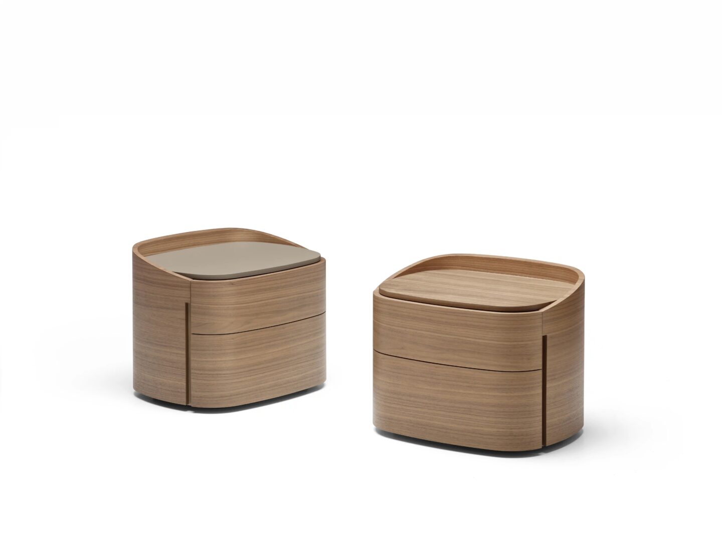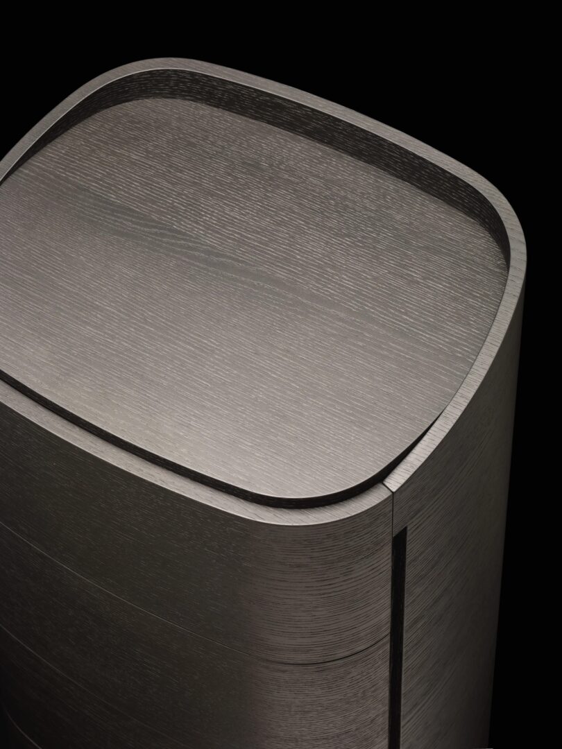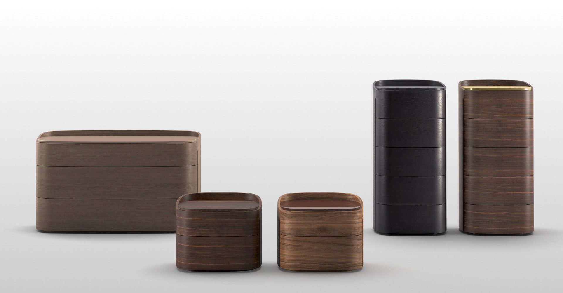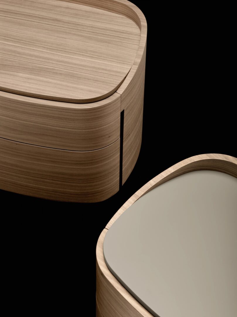 Контейнеры Babila отличаются округлыми формами и верхним профилем, поднимающимся относительно верха, что, в свою очередь, подчеркивает его толщину, выступающую относительно края верхнего ящика. Вертикальный разрез для открытия ящиков является отличительной чертой этого проекта. Деревянный шпон полностью обволакивает мебель, плавно обнимая ее.
