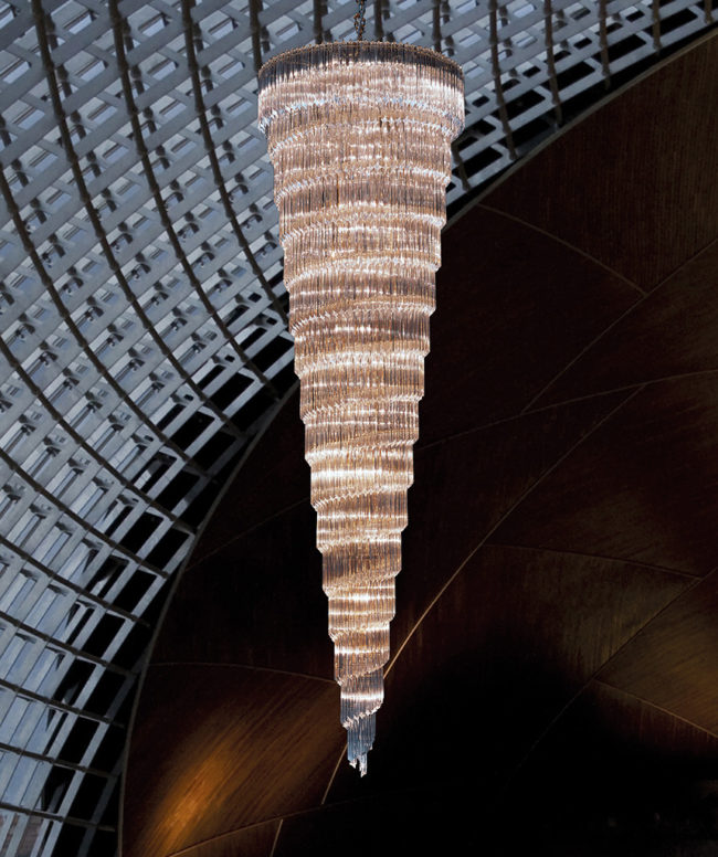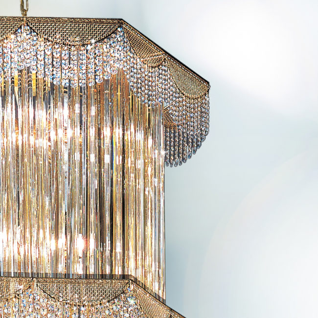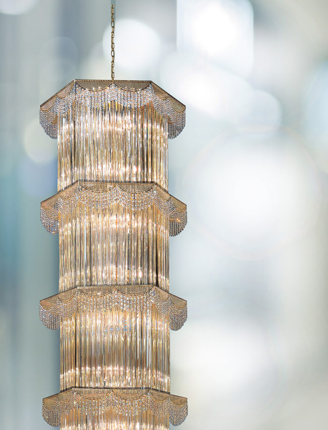 Роскошные люстры из коллекции Patrizia Volpato, заключенные в таинственные геометрические структуры (триэдры), представляют собой захватывающую задачу найти в этих творениях неразрывную связь между царством магии и нашим духом. Свет распадается и рождает множество форм, которые предлагают нам ценные энергетические затяжки, идеально подходящие для салонов и больших пространств.