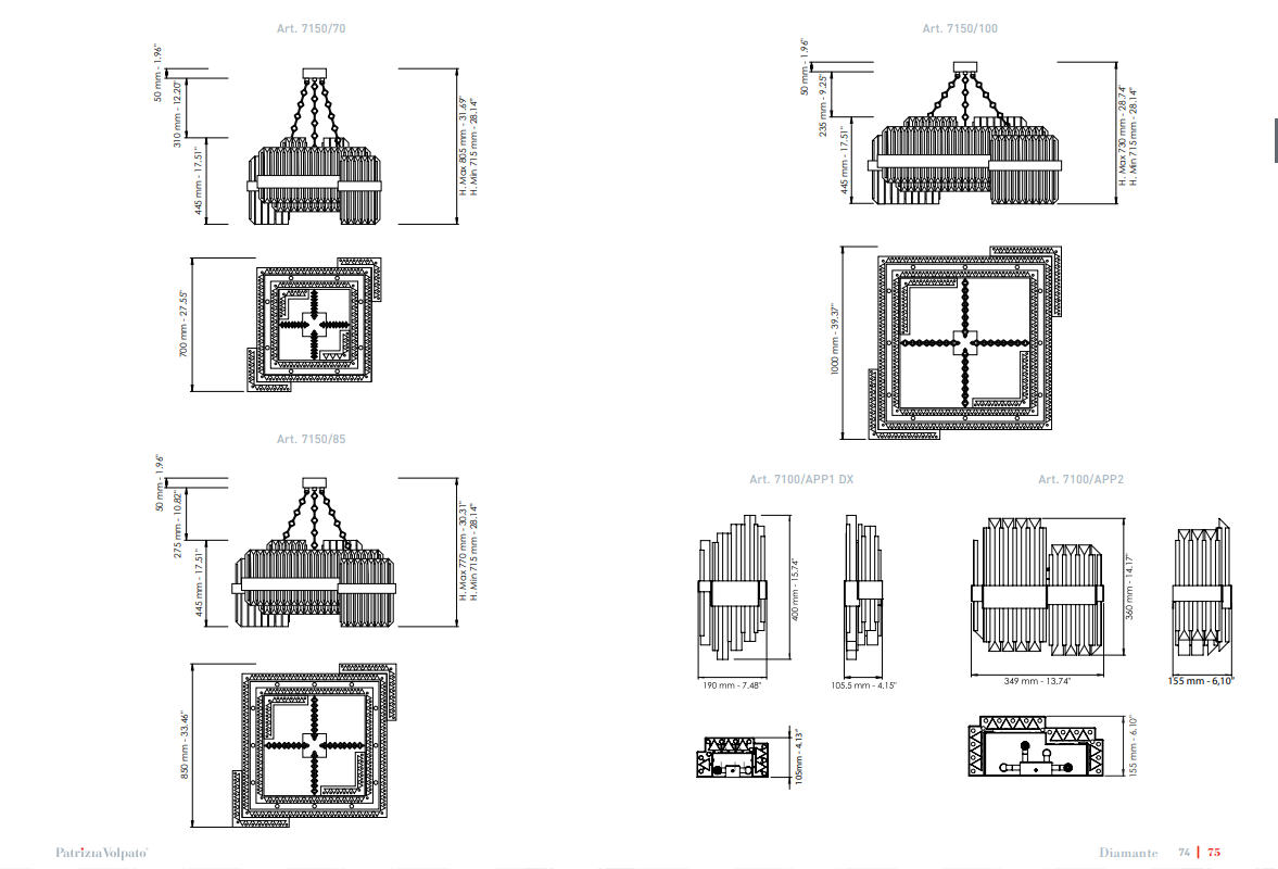 Драгоценные блики алмаза предлагаются здесь благодаря сочетанию элегантных граненых алюминиевых канюль с серией ярких треугольных призм из драгоценного кристалла, все плотно обернутые металлическими полосами с элегантной и ухоженной отделкой. Сочетание трех элементов, которые формируют большое разнообразие предложений дизайна и стиля.