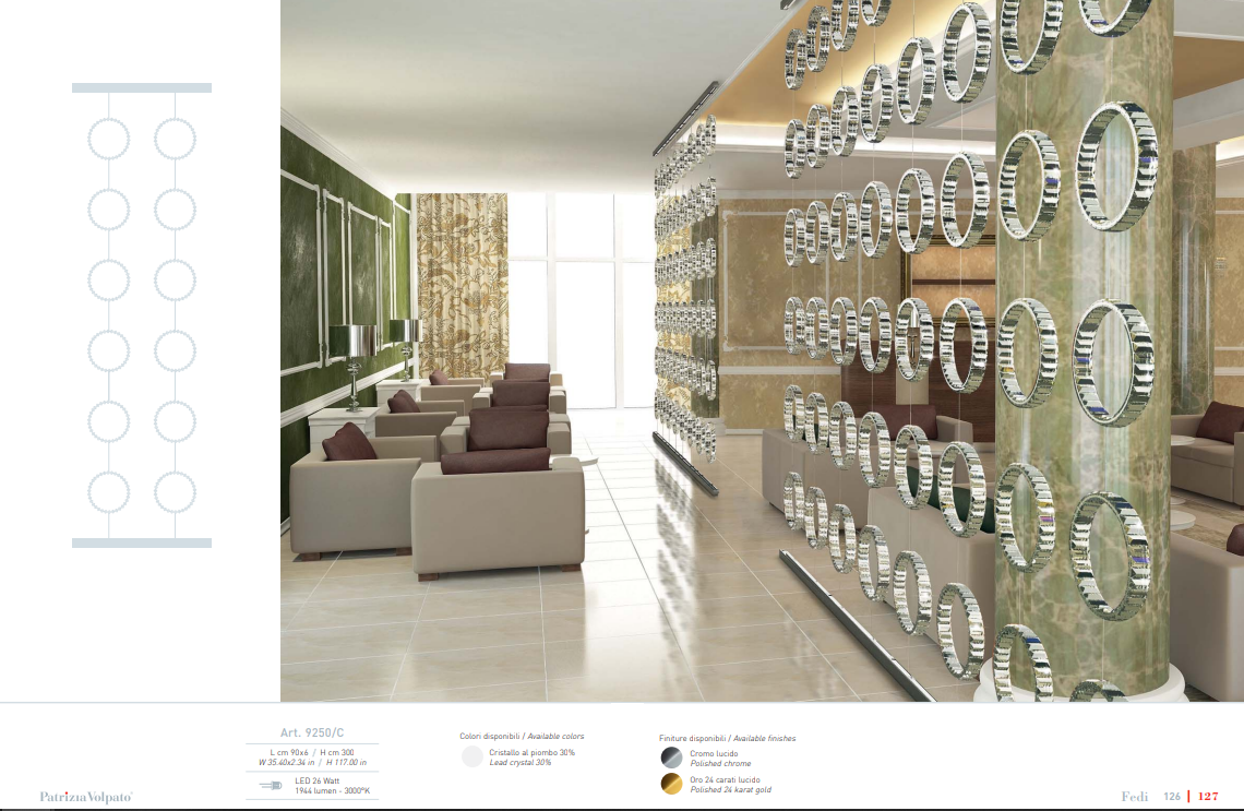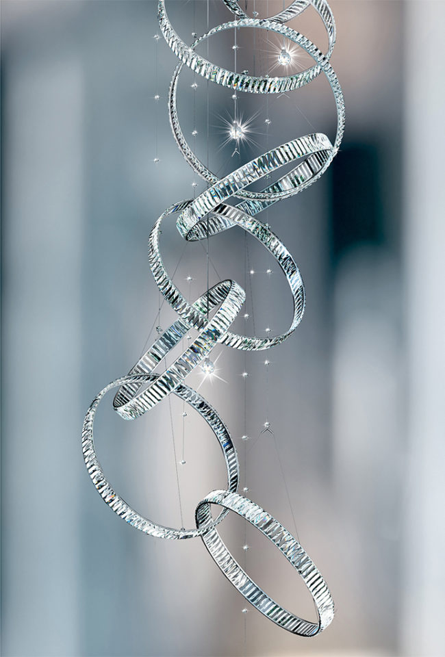 Из близости двух душ, которые встречаются и сливаются в одном дыхании, рождается вера. Patrizia Volpato ценит семью, делая ее главным героем своего создания благодаря современному переплетению колец, присутствующих в роскошных люстрах этой коллекции.