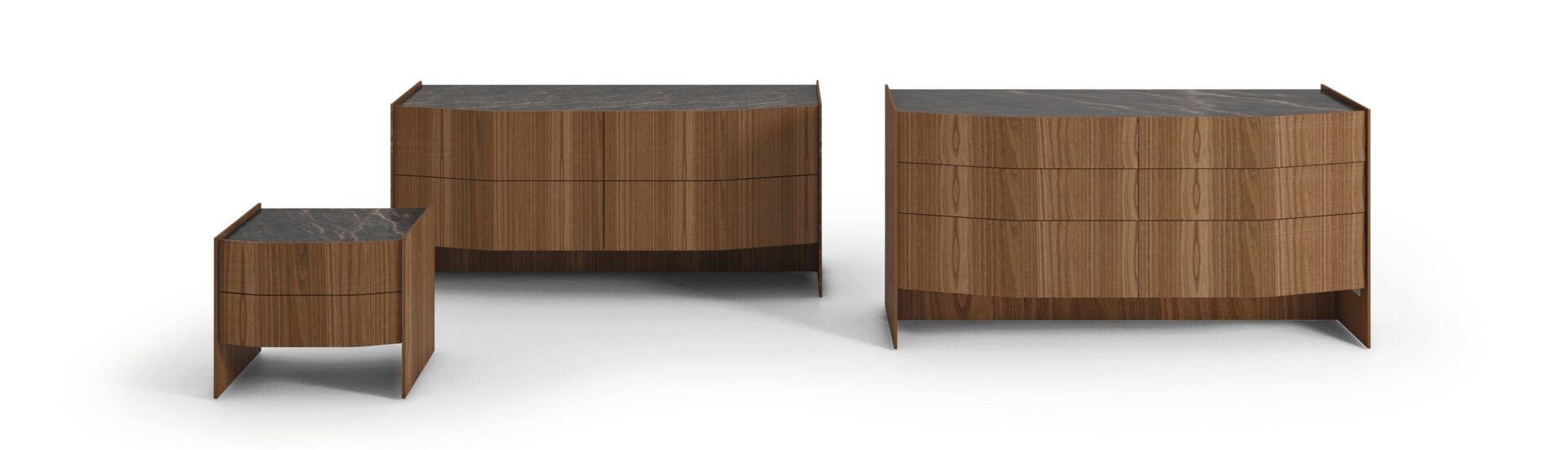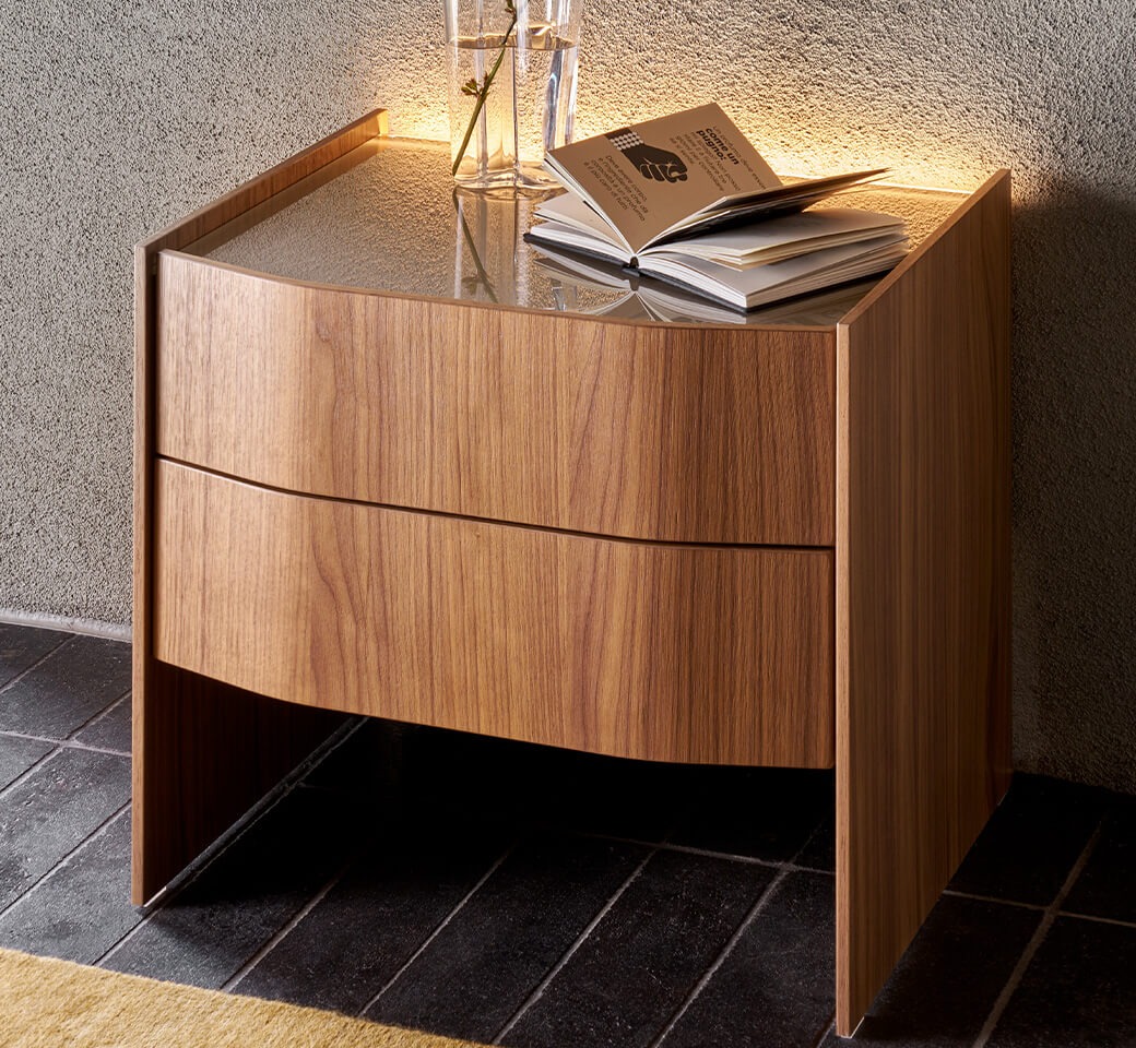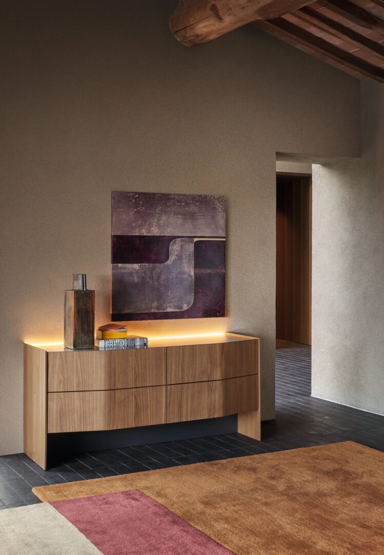 Комод и прикроватная тумбочка Comma говорит на изысканном эстетическом языке, выполненном из арочных поверхностей и тонких линий, в гармонии с современной средой.