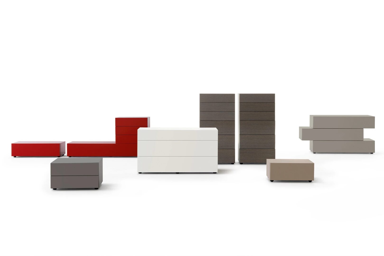 Минимальная эстетика для этой серии модульных комодов, в которых отдельные или составные элементы могут развивать оригинальные формы мебели. Щедрая толщина фасадов сочетается с тонкими плоскостями для гармоничного и очень приятного эффекта.