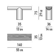 Консоль Pilotis «Console» впечатляет своей архитектурной выразительностью. Ее основание выполнено из полированной стали в форме цилиндра, вставленного в горизонтальный полуцилиндр. Этот прием создает эффект «парящей» конструкции, подчеркивая легкость и одновременно монументальность предмета. Боковой выступ столешницы добавляет визуальный объем, делая акцент на благородстве натурального дерева.
